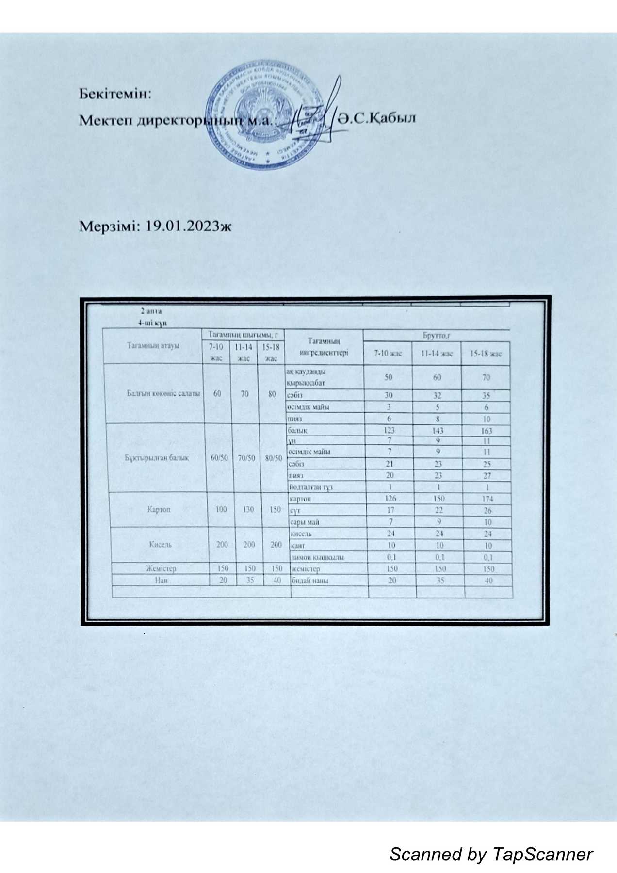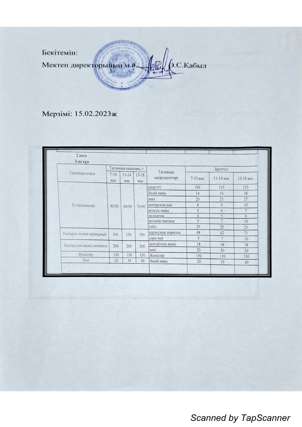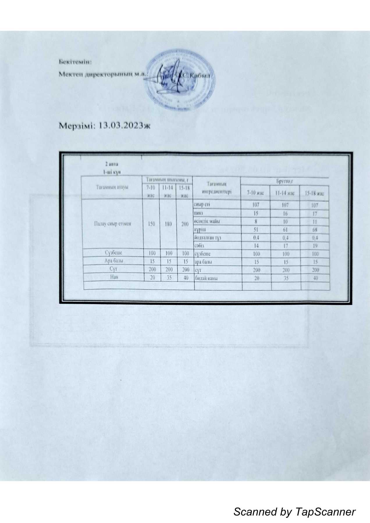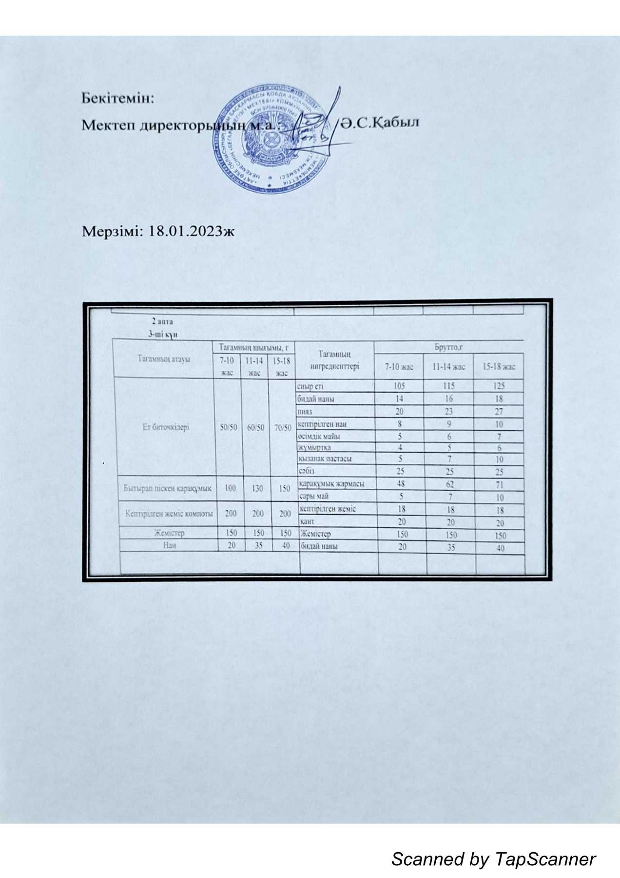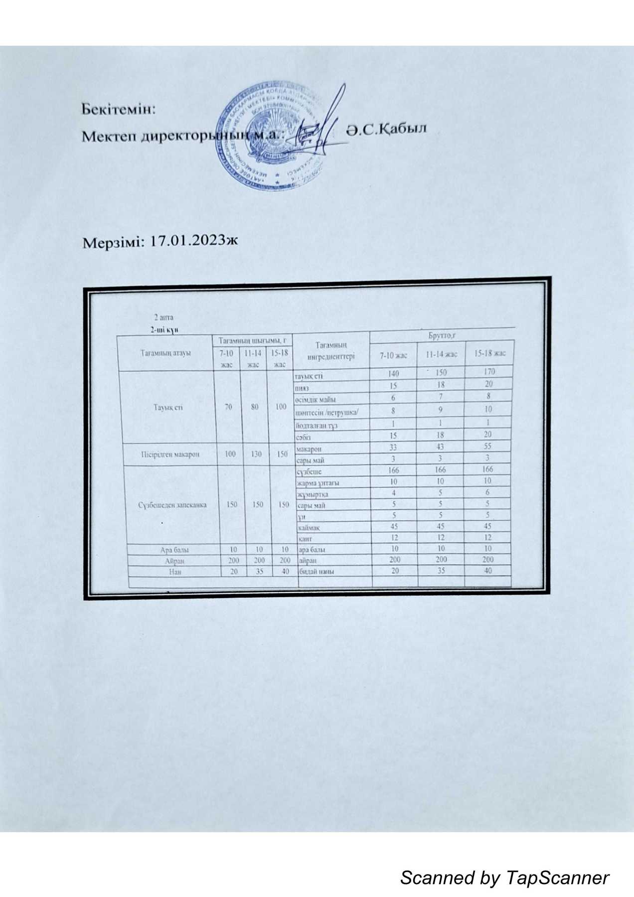 Ыстық тамақтандыруды ұйымдастыру 2022-2023ж