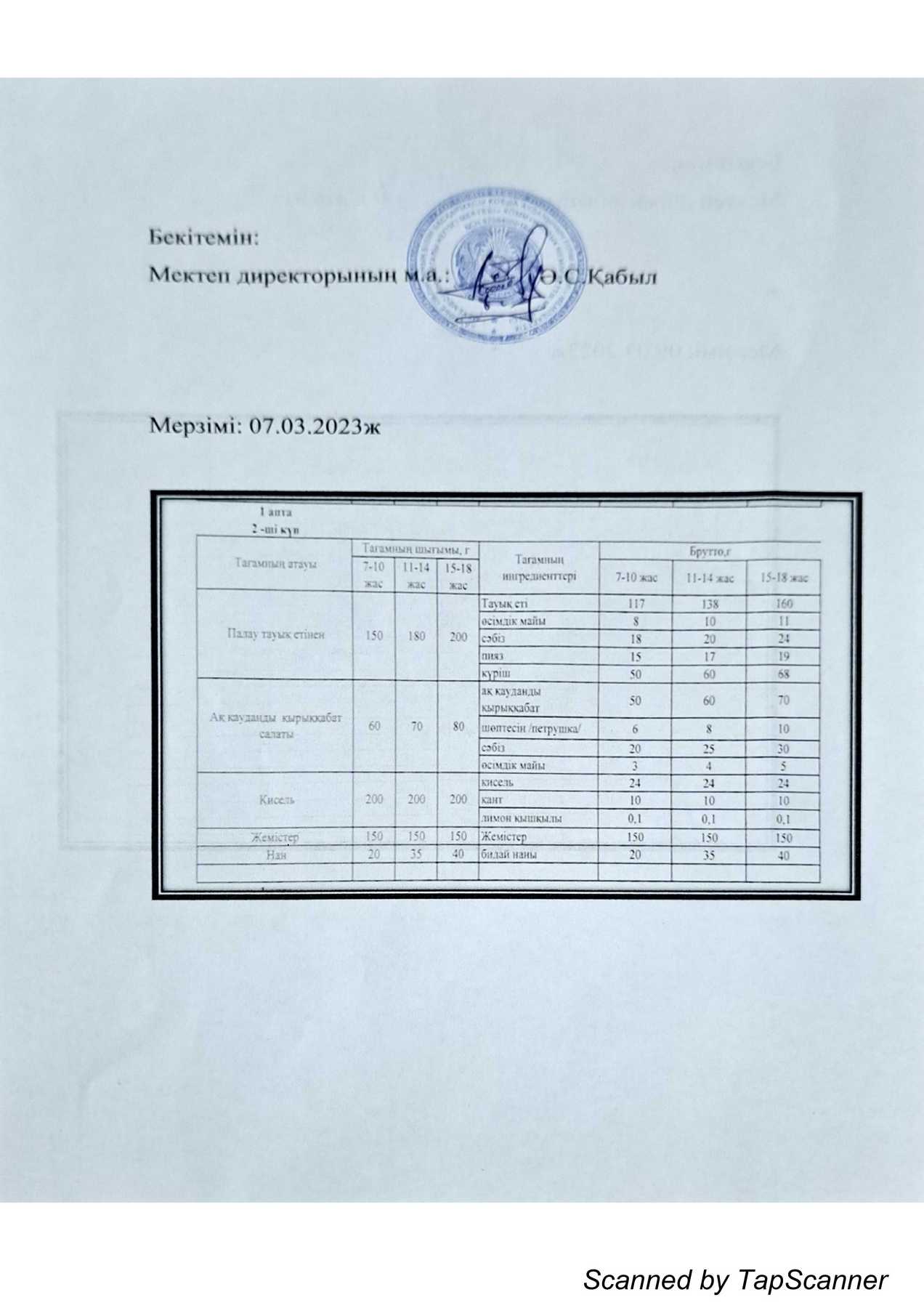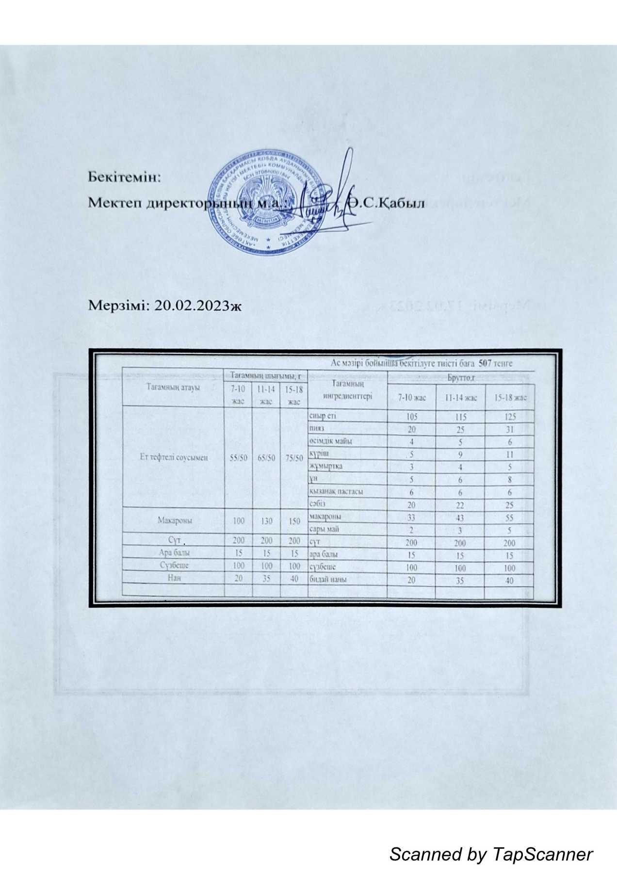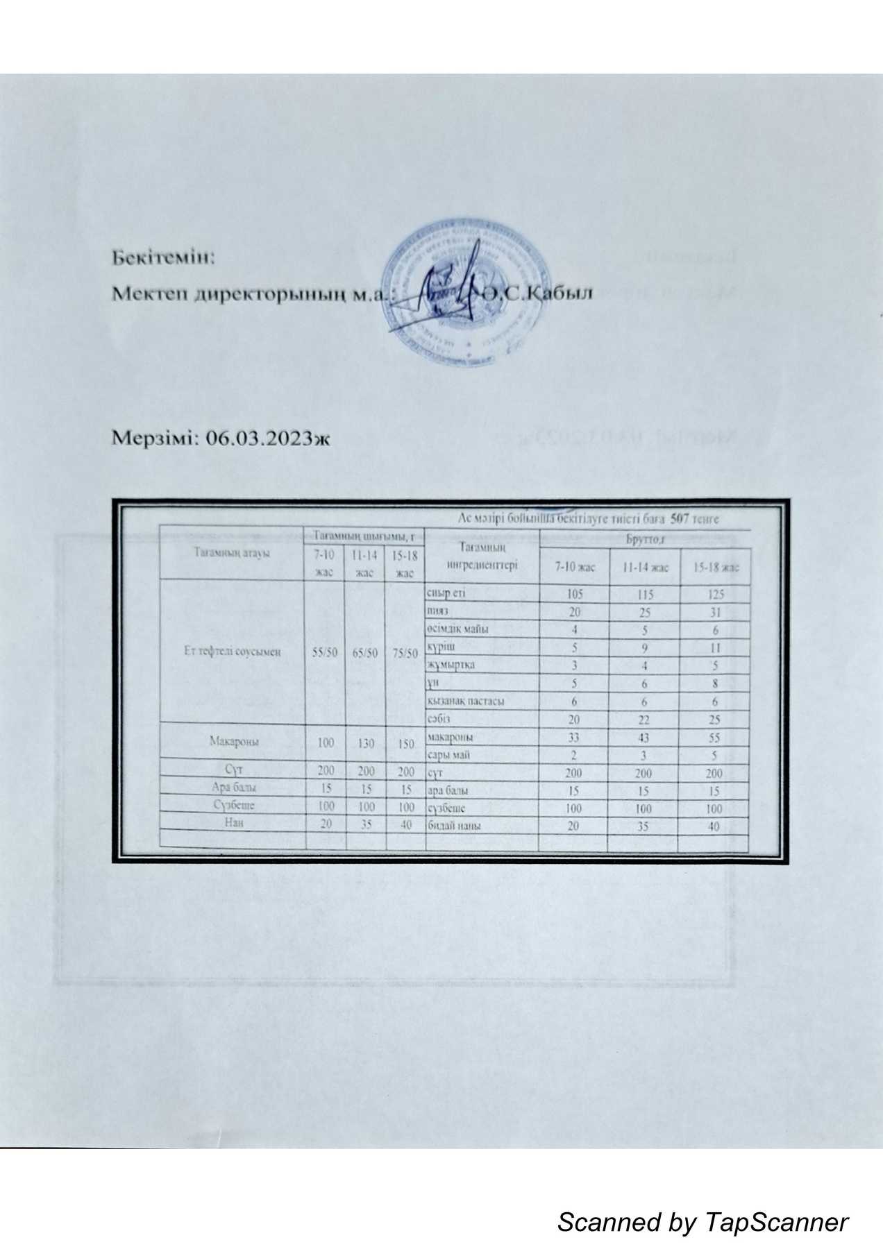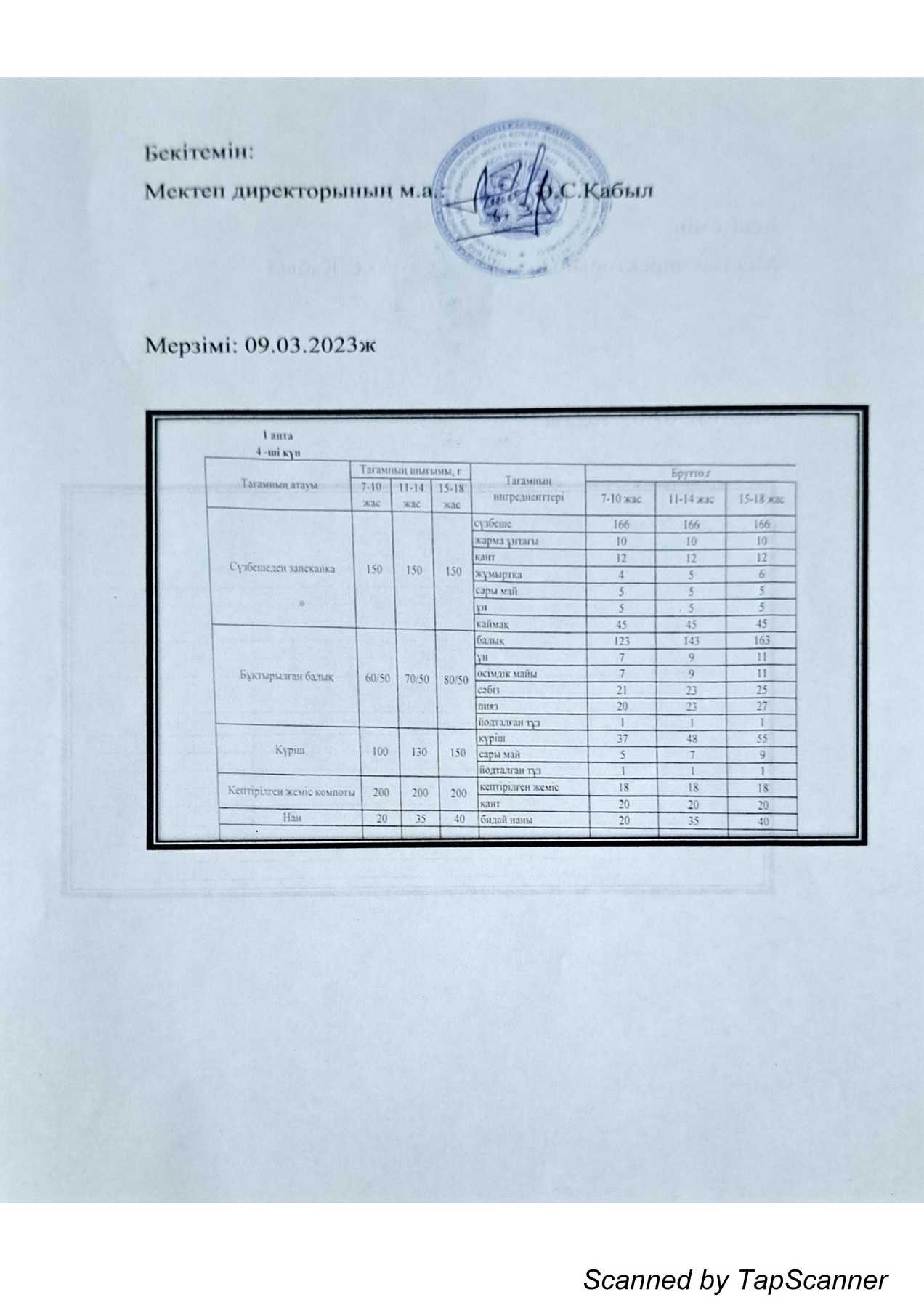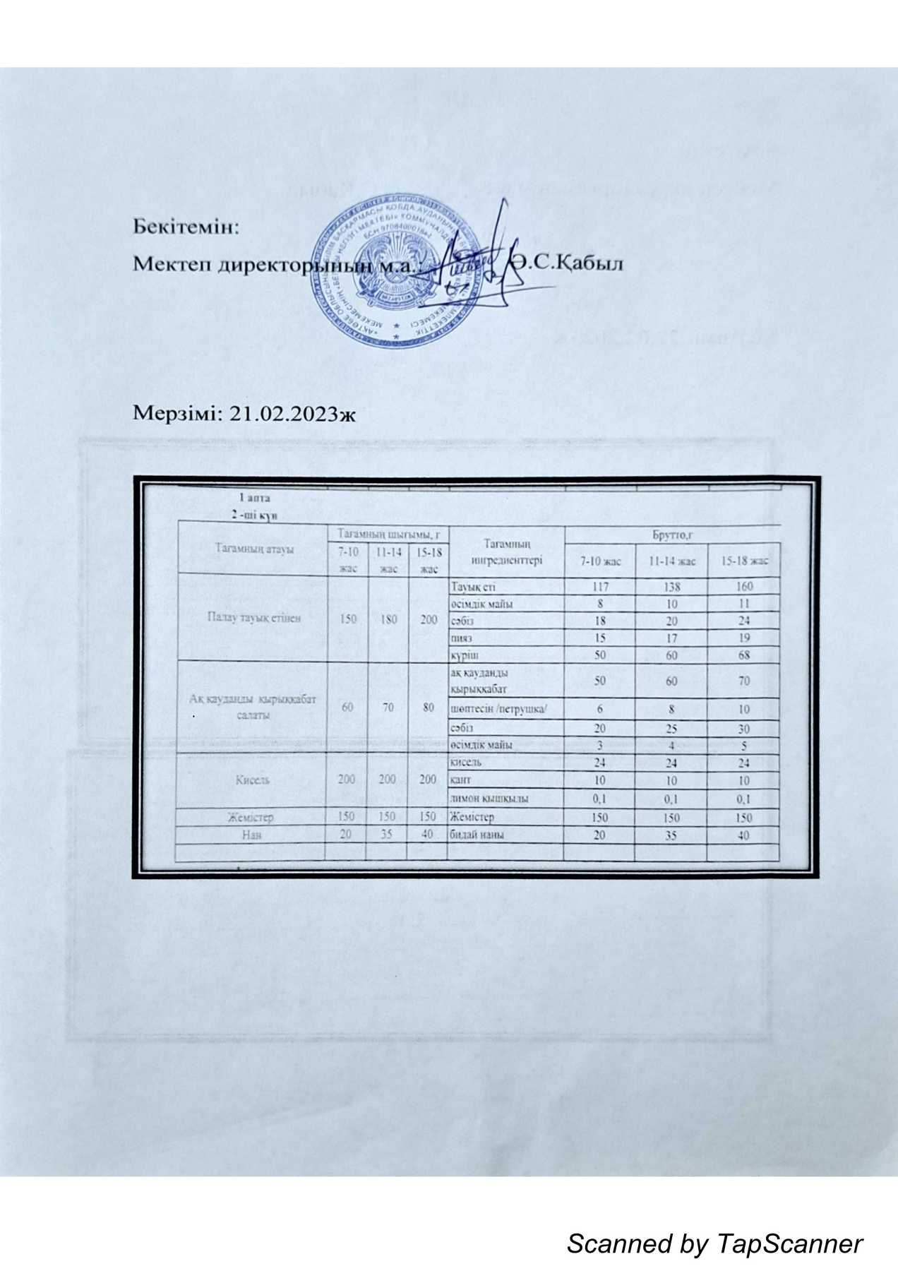 Ыстық тамақтандыруды ұйымдастыру 2022-2023ж