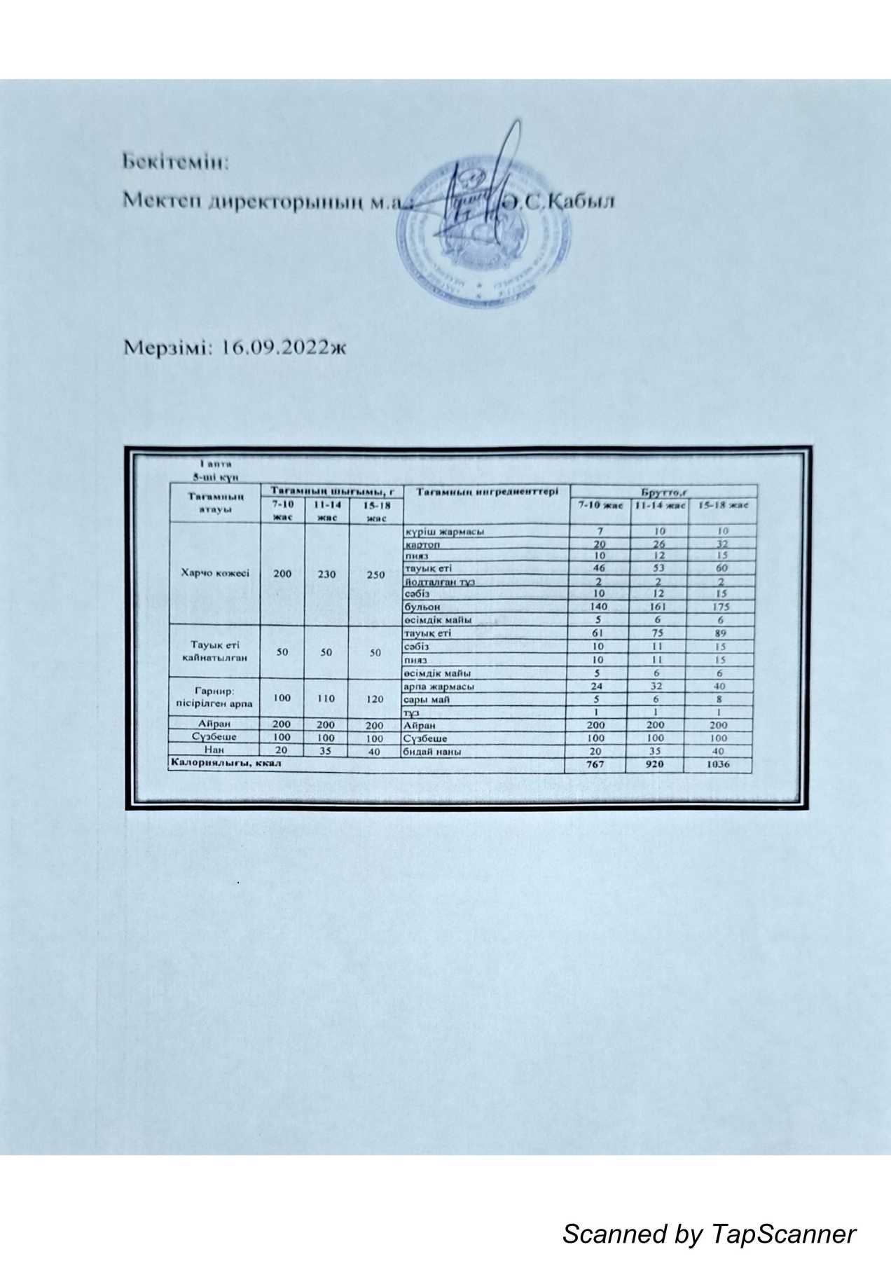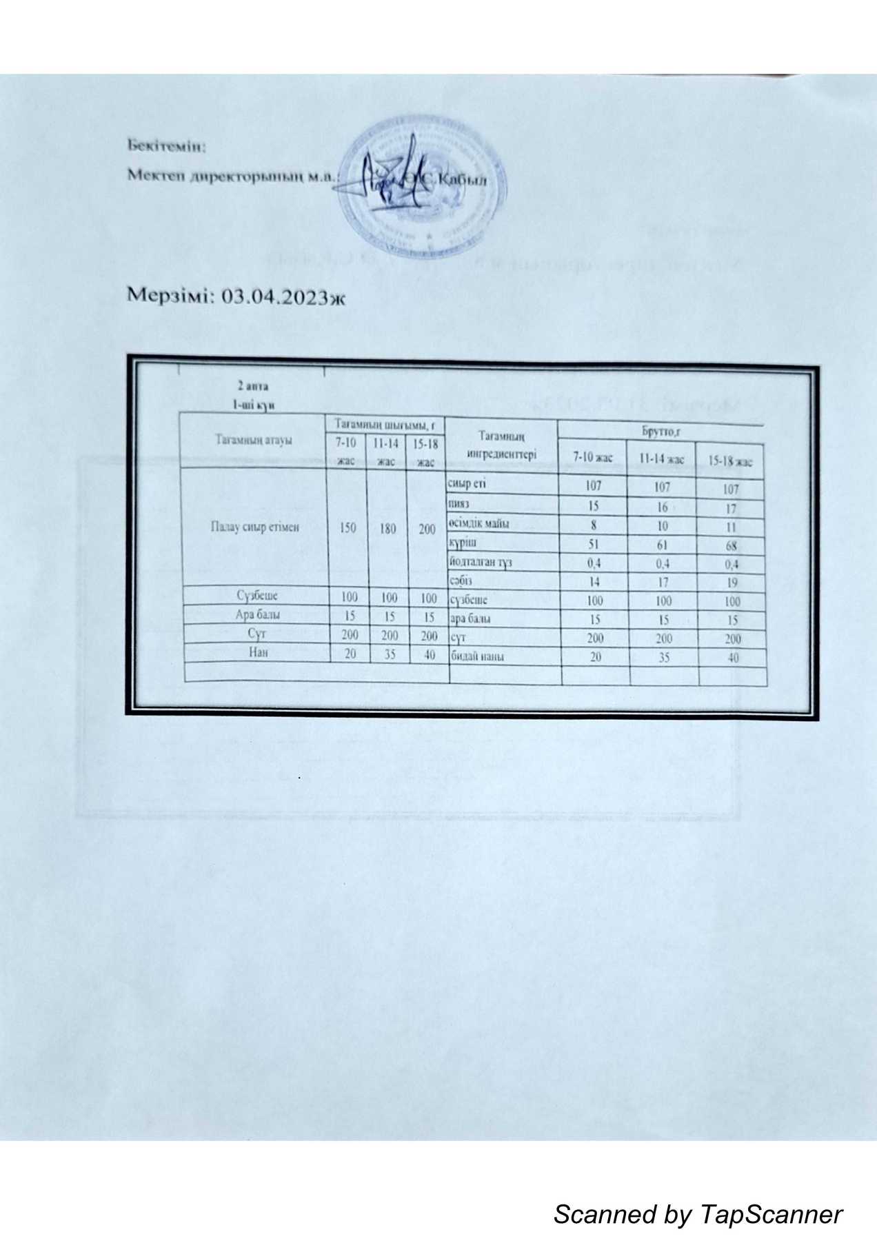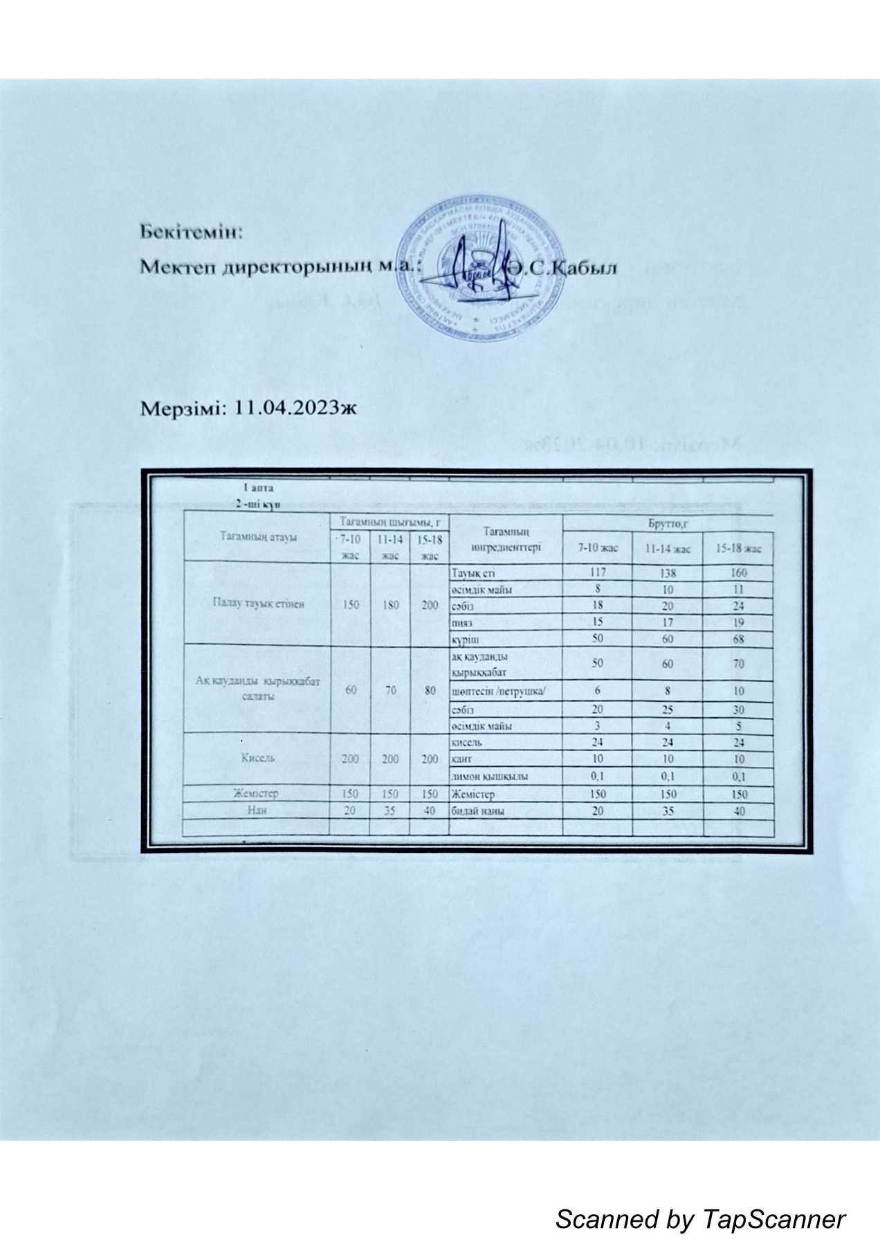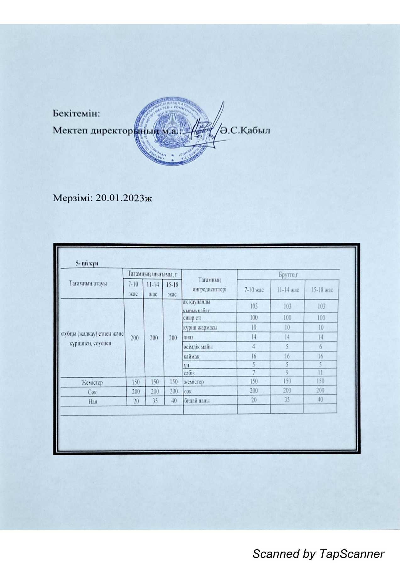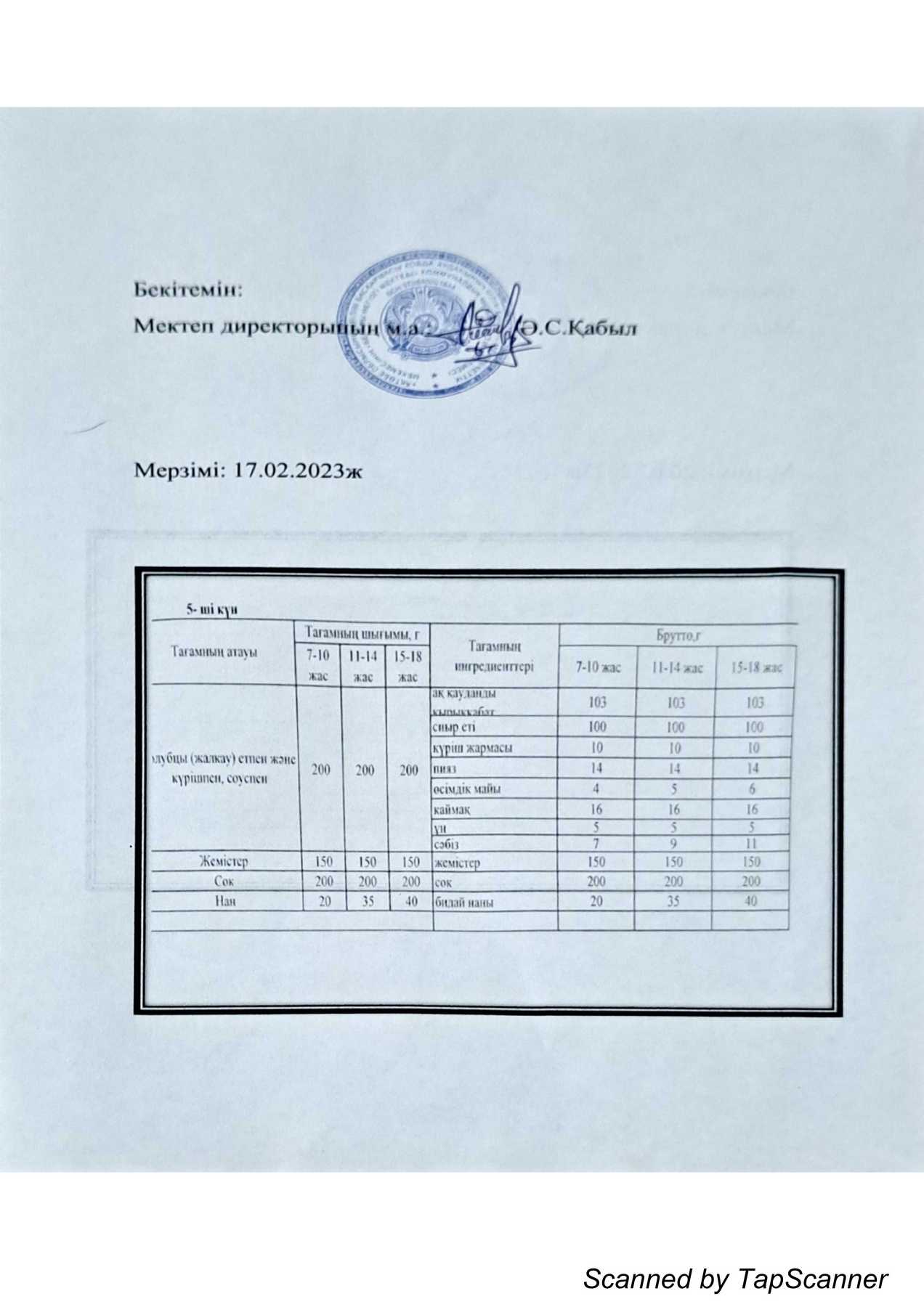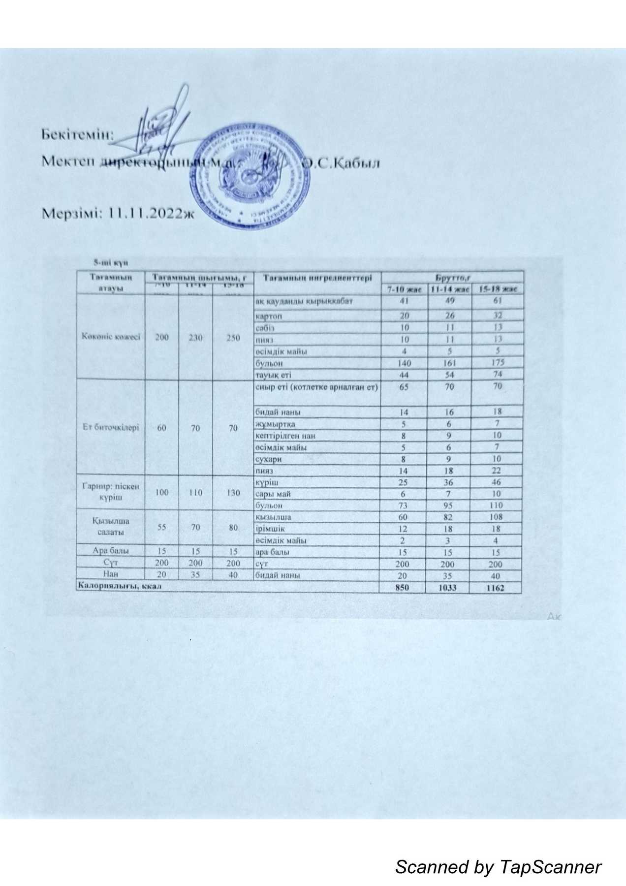 Ыстық тамақтандыруды ұйымдастыру 2022-2023ж