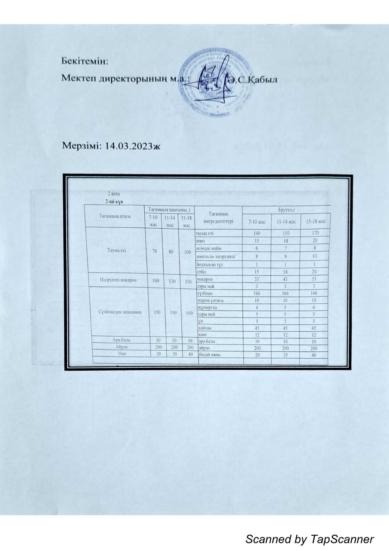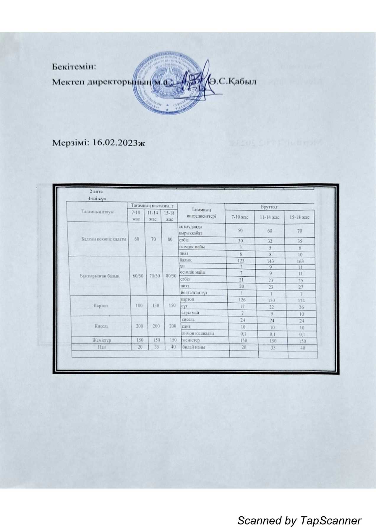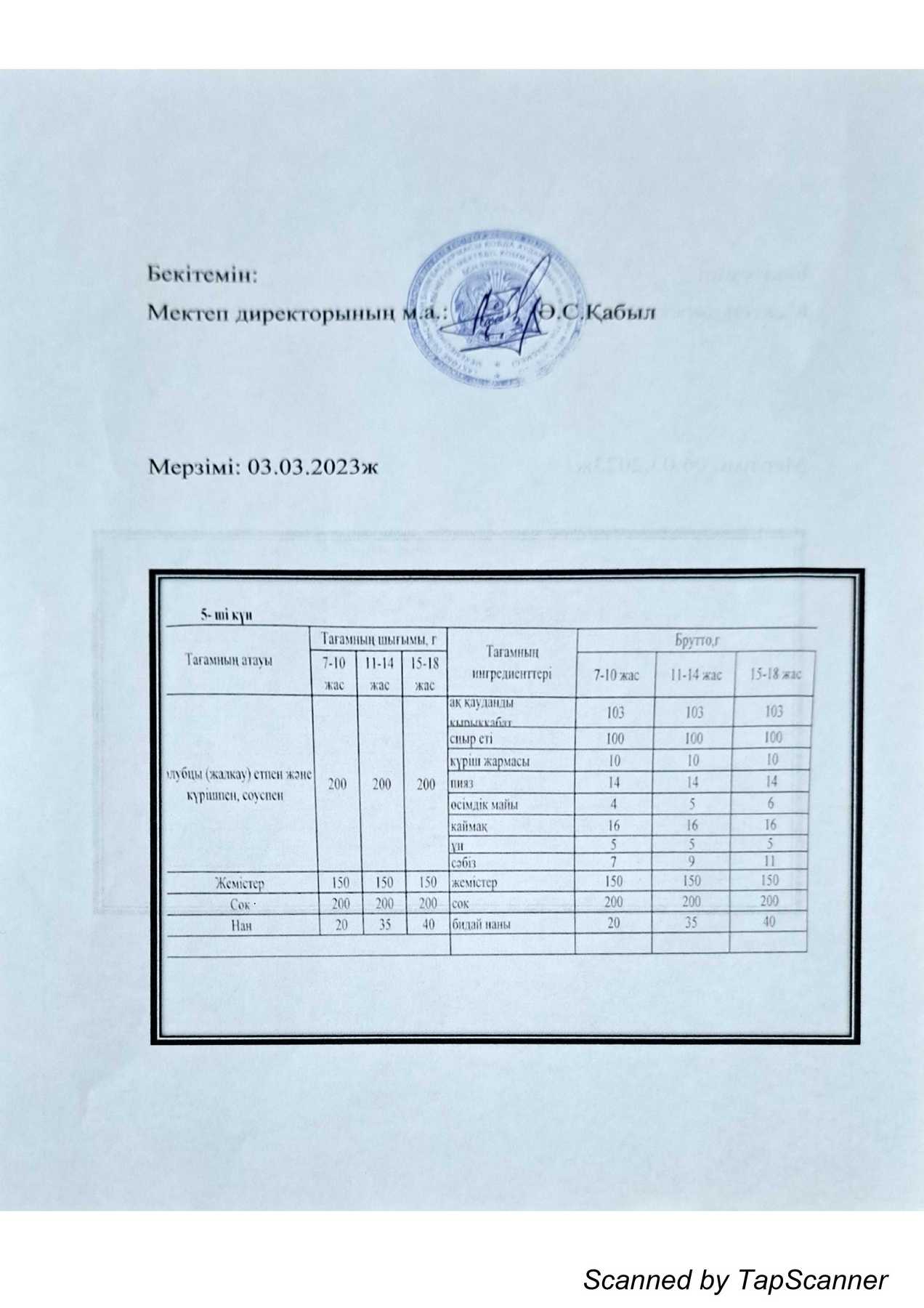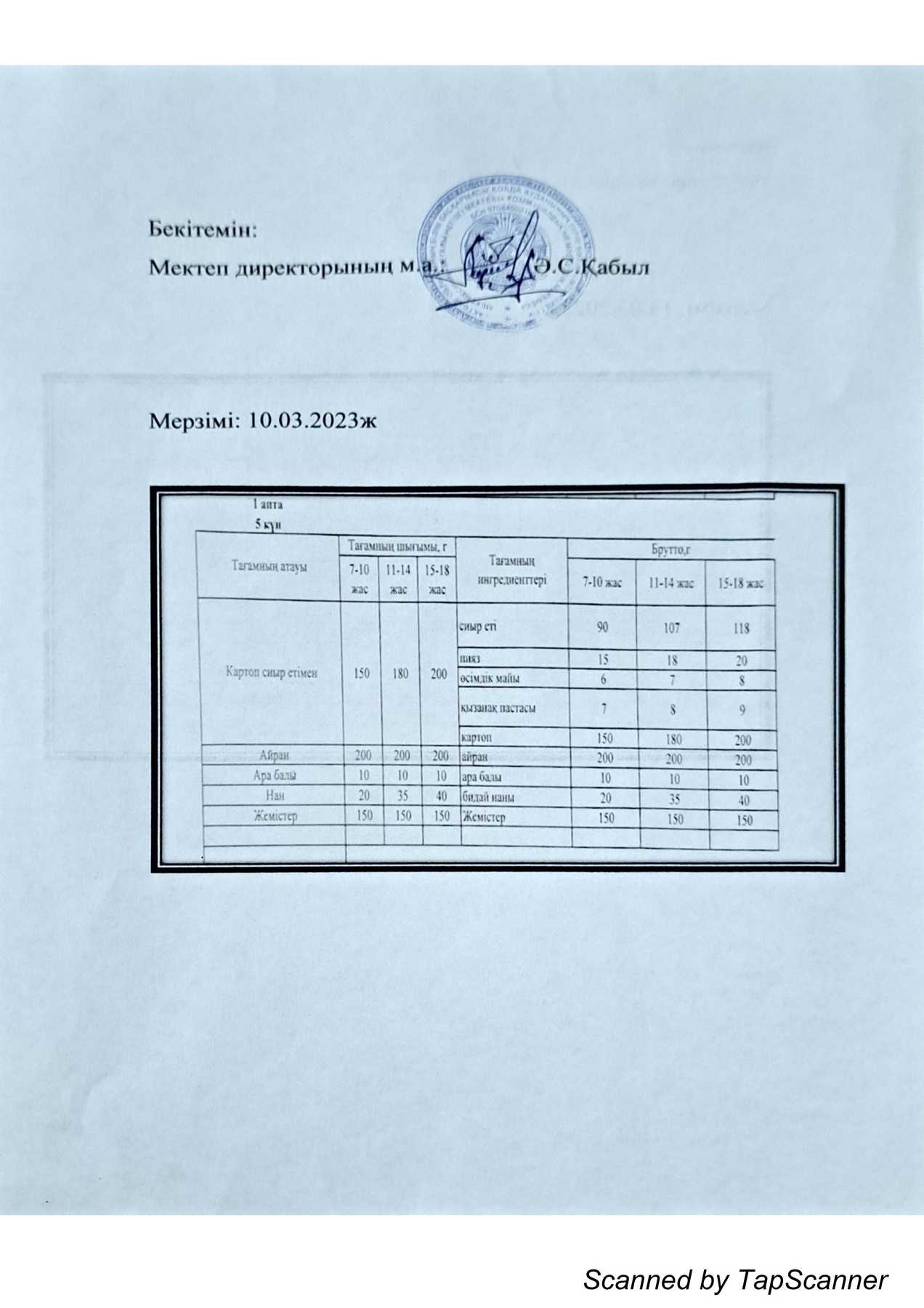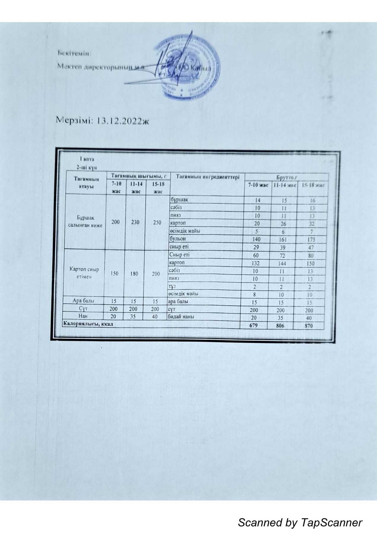 Ыстық тамақтандыруды ұйымдастыру 2022-2023ж