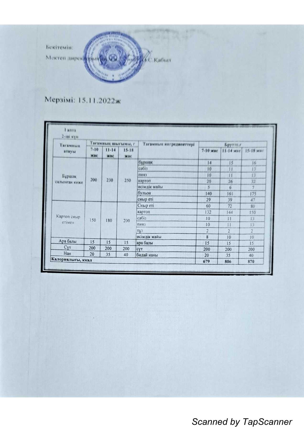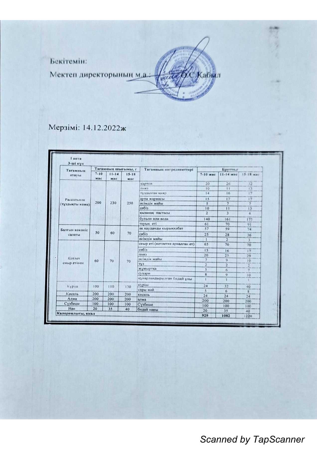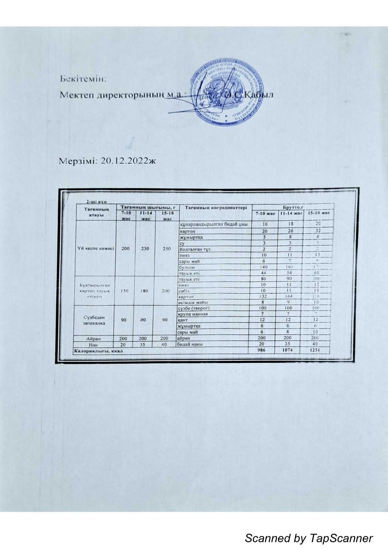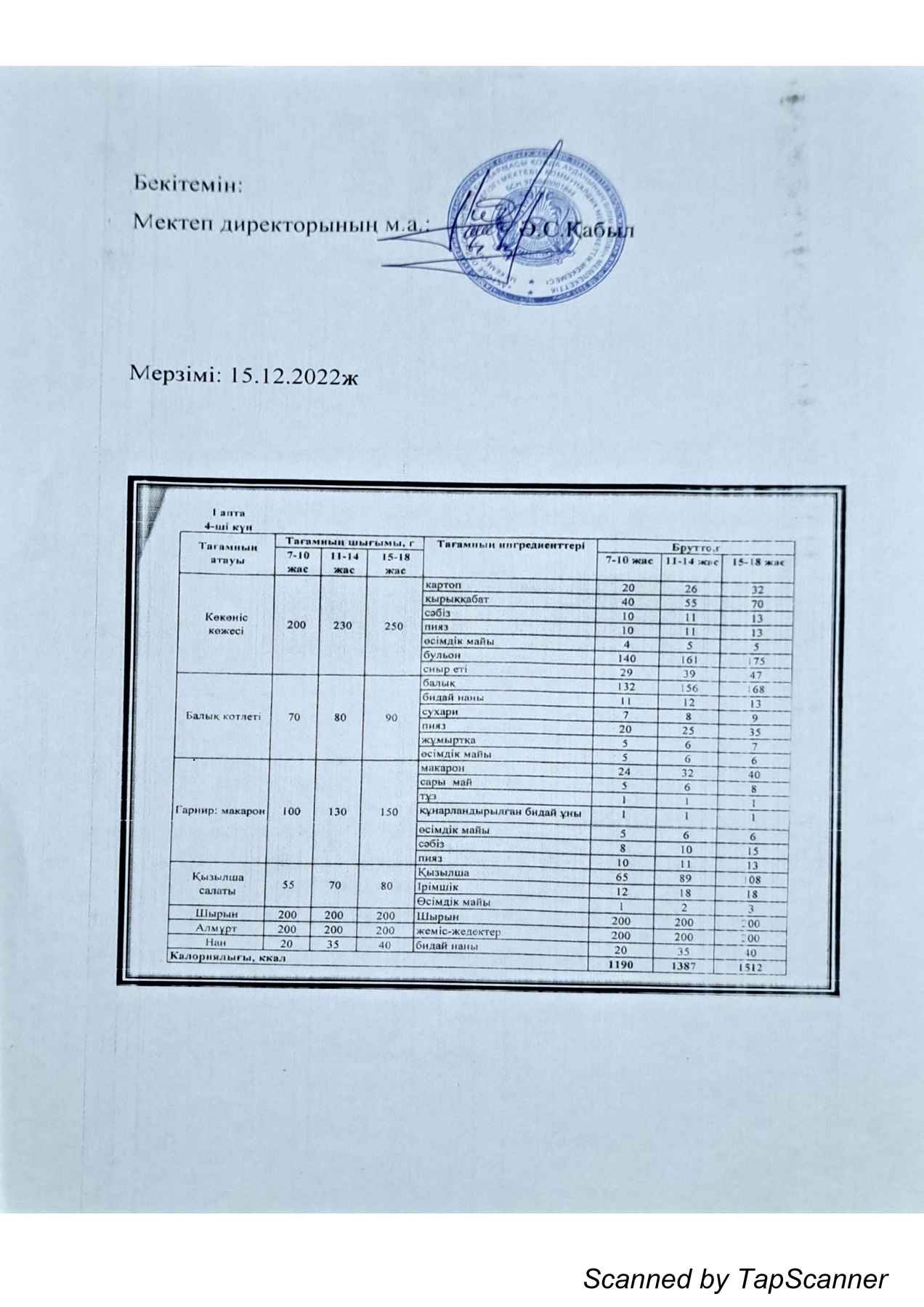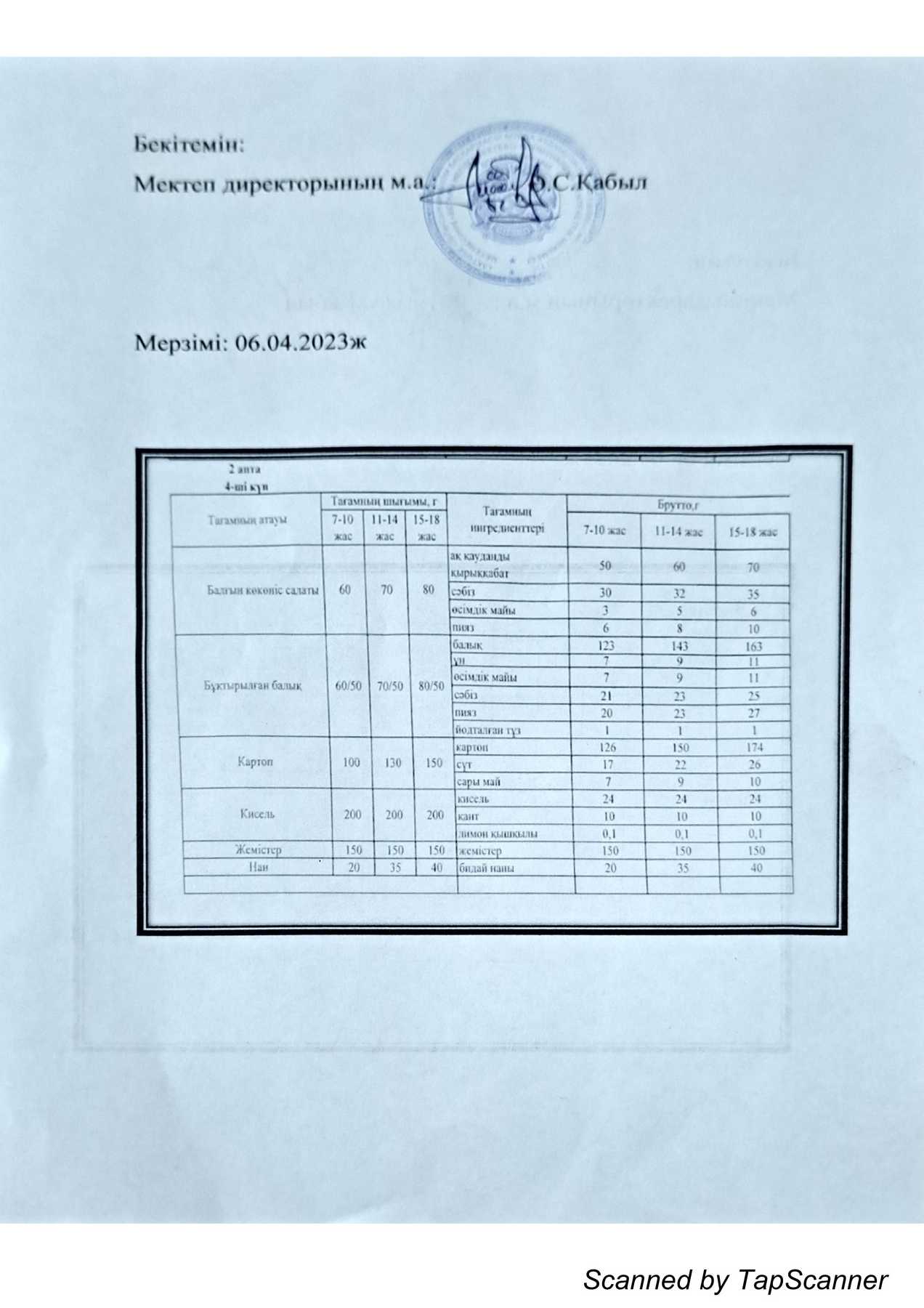 Ыстық тамақтандыруды ұйымдастыру 2022-2023ж