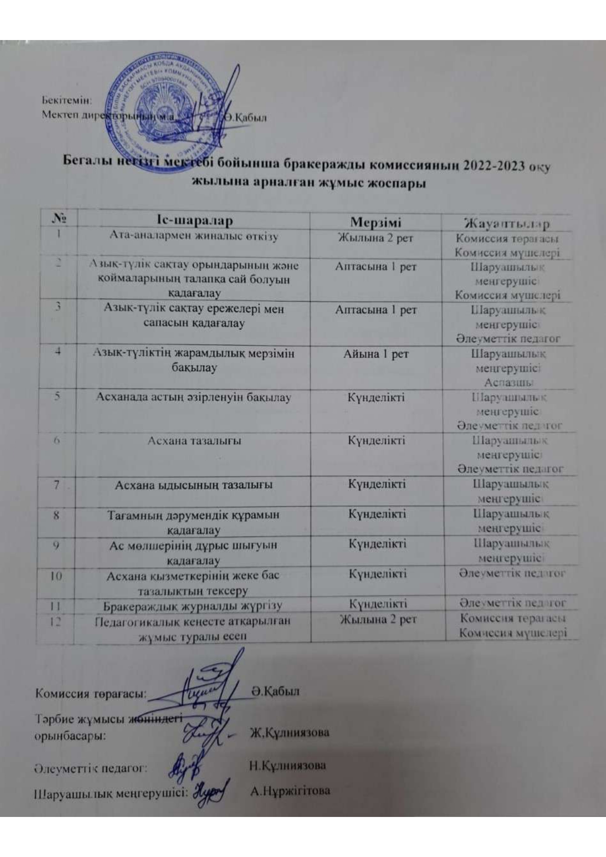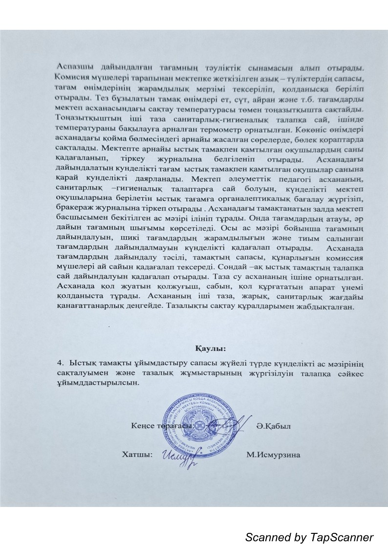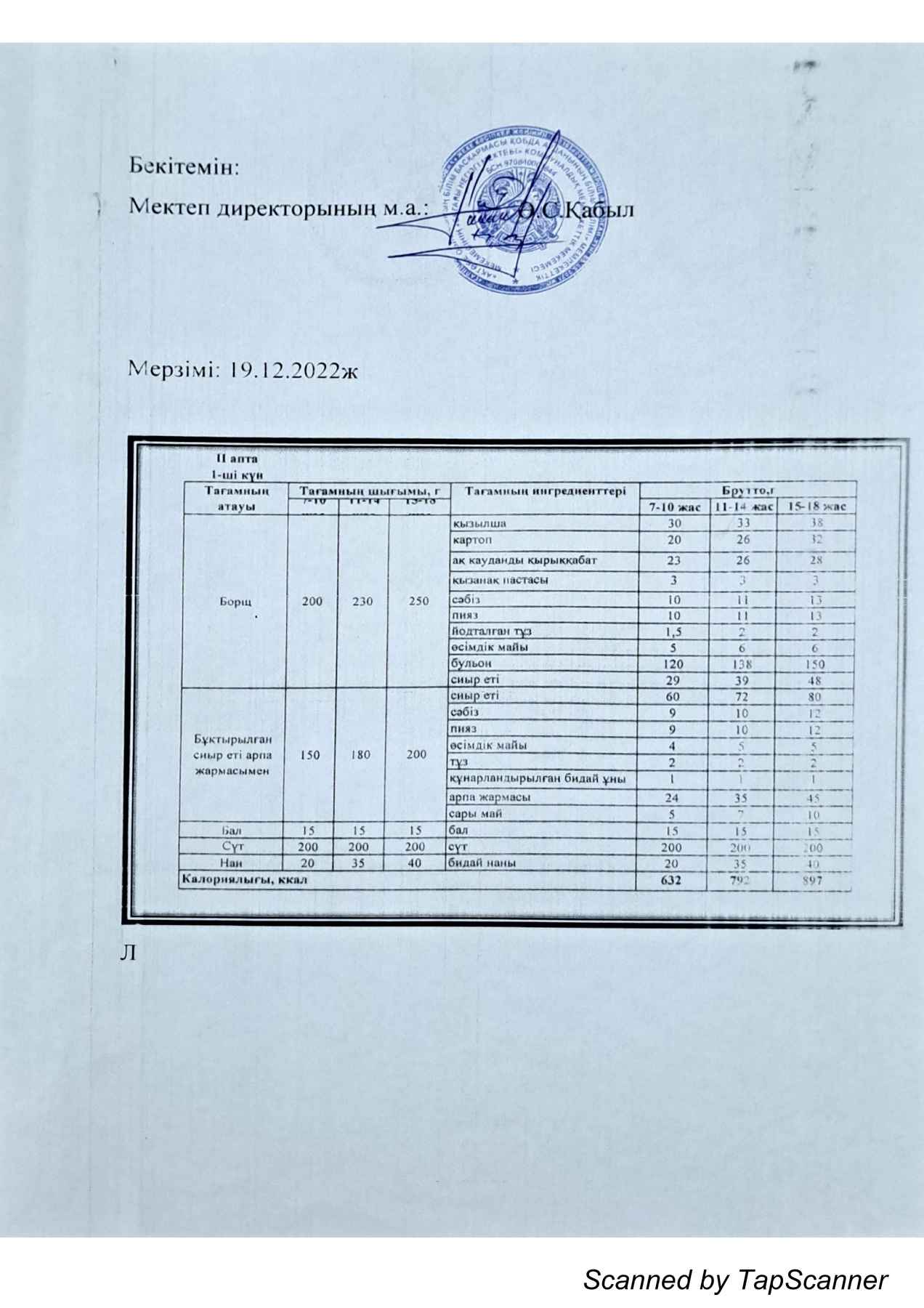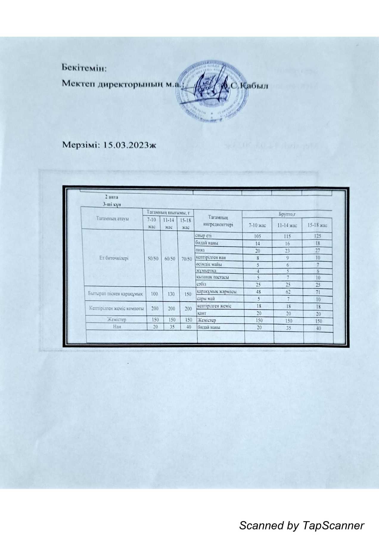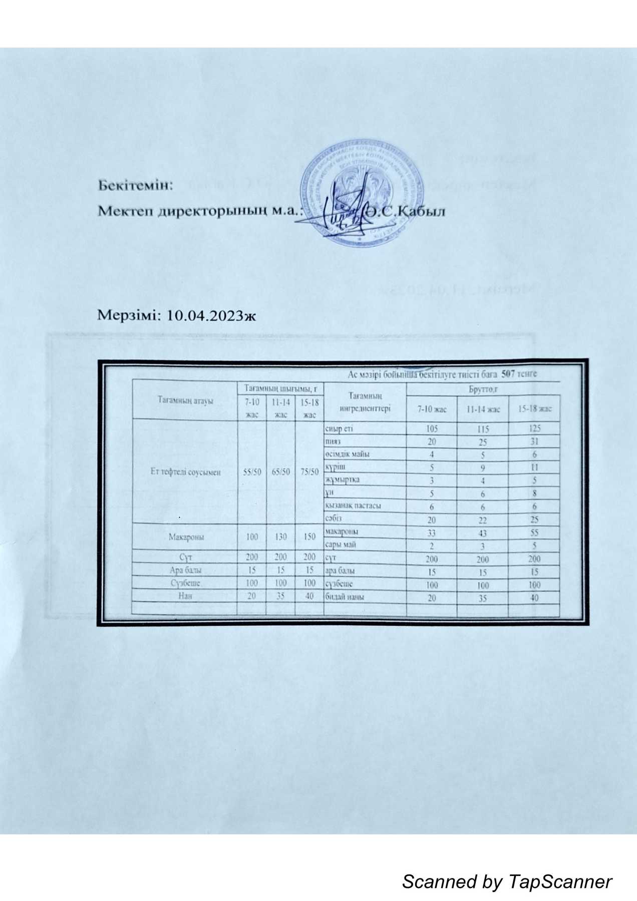 Ыстық тамақтандыруды ұйымдастыру 2022-2023ж