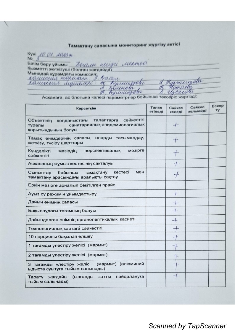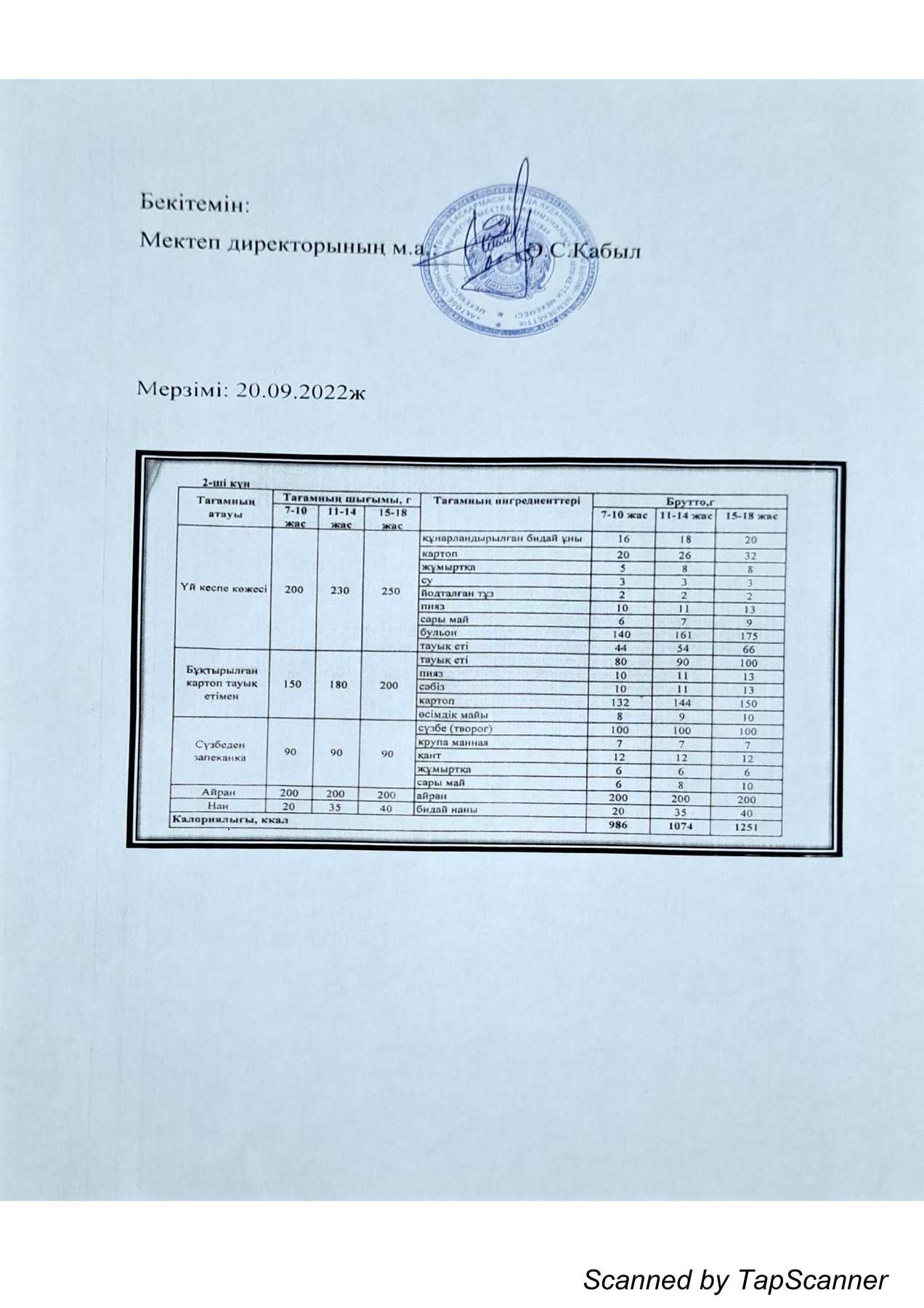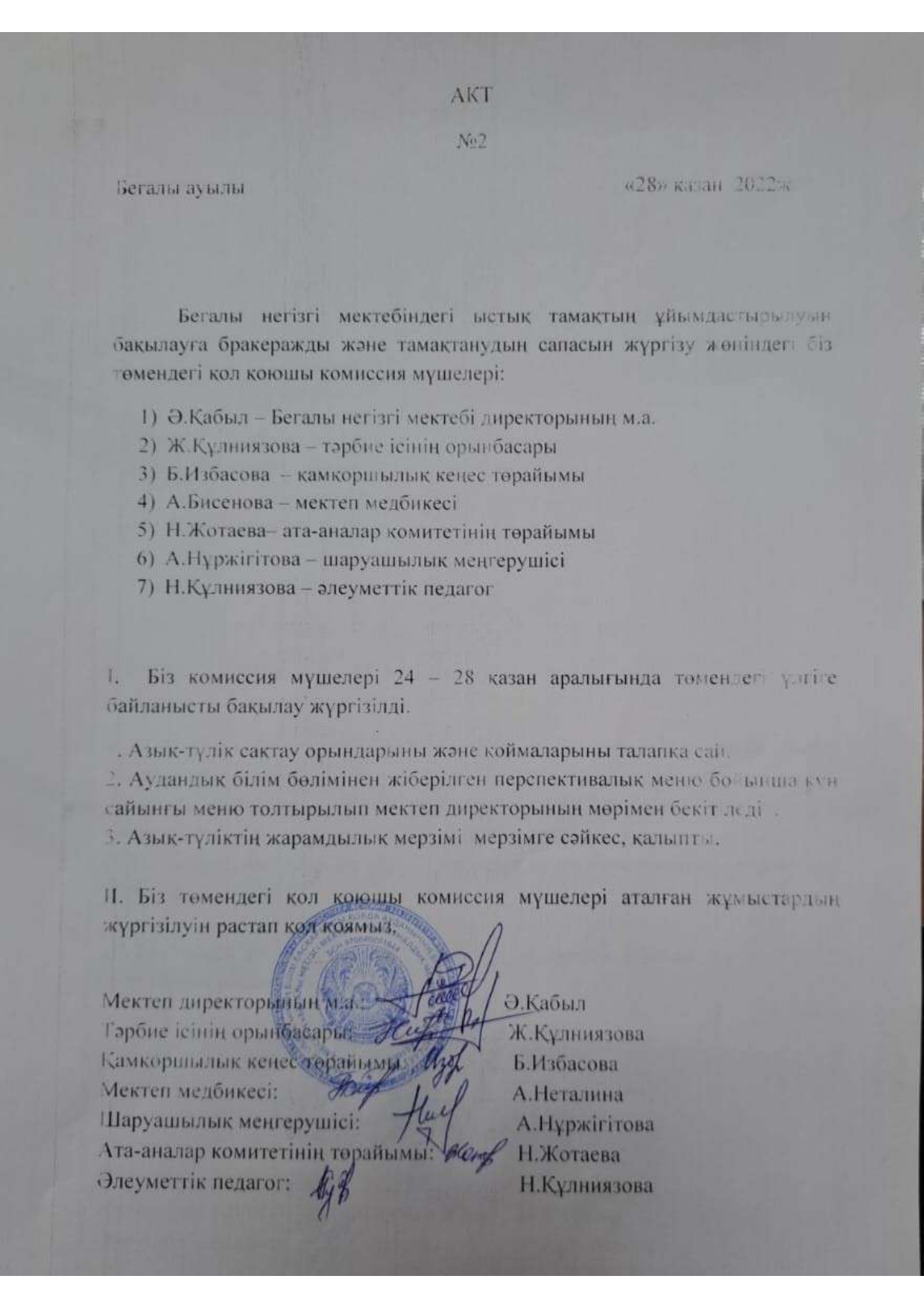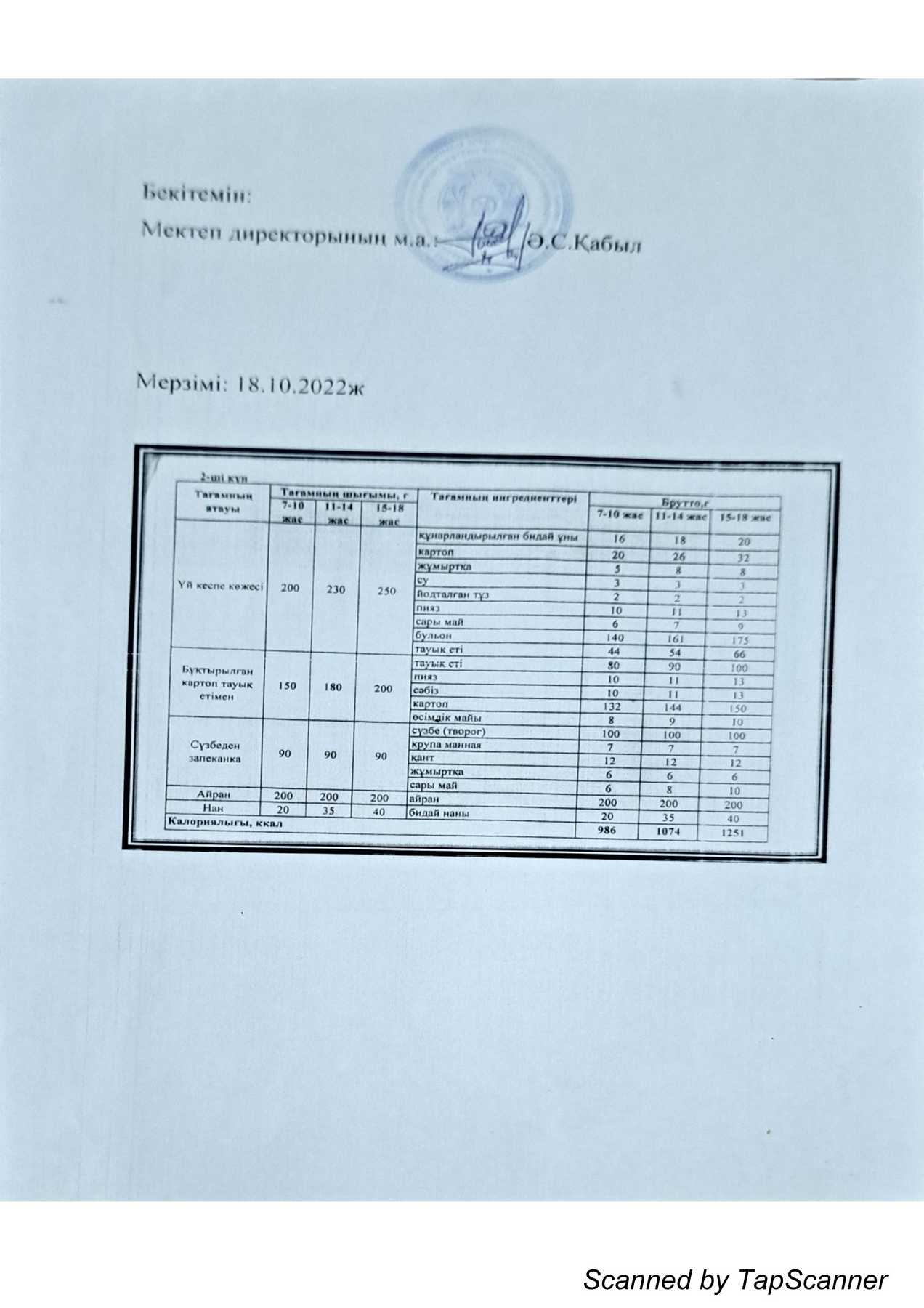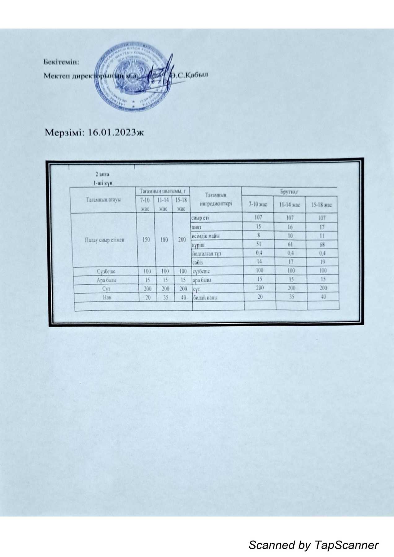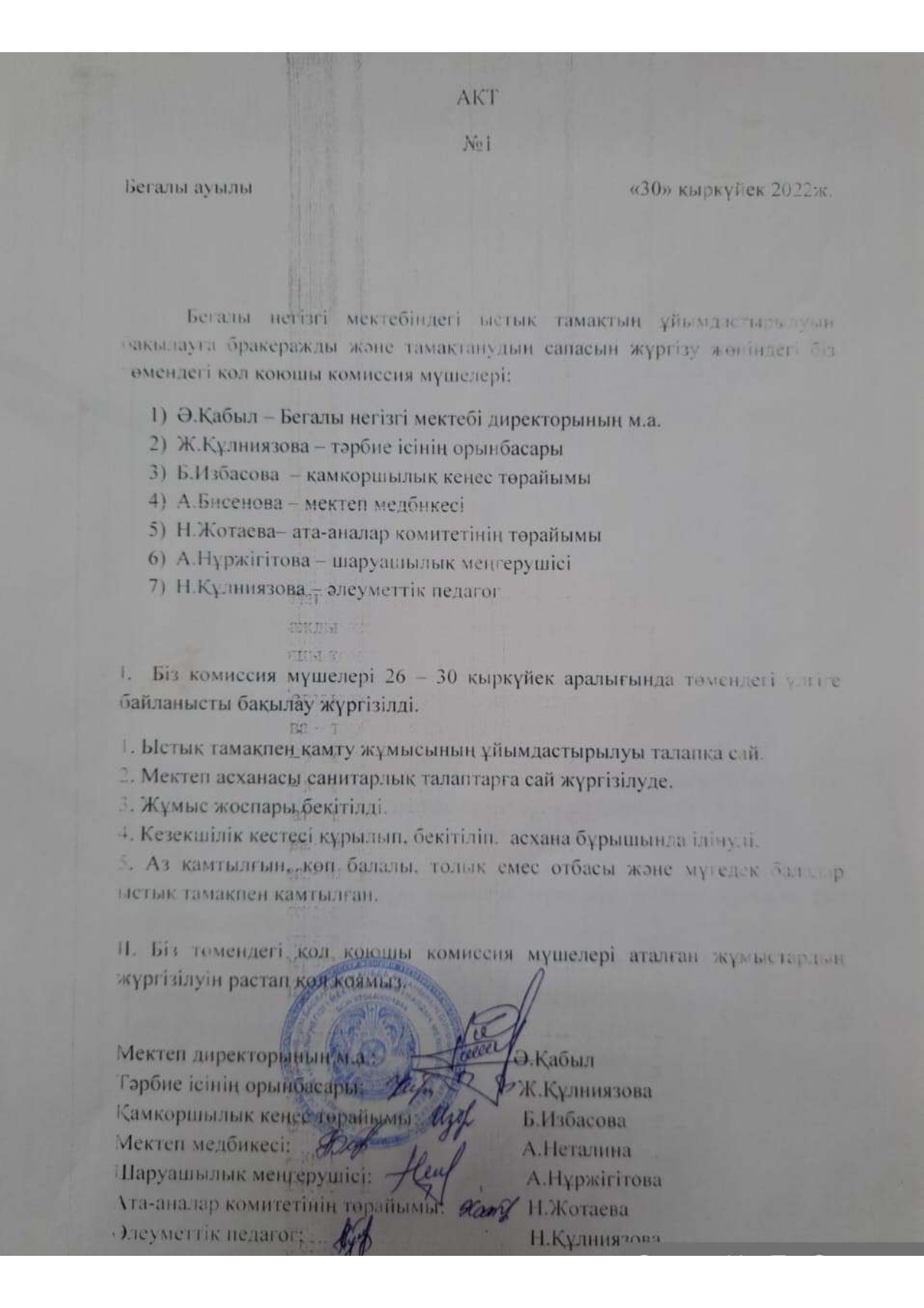 Ыстық тамақтандыруды ұйымдастыру 2022-2023ж