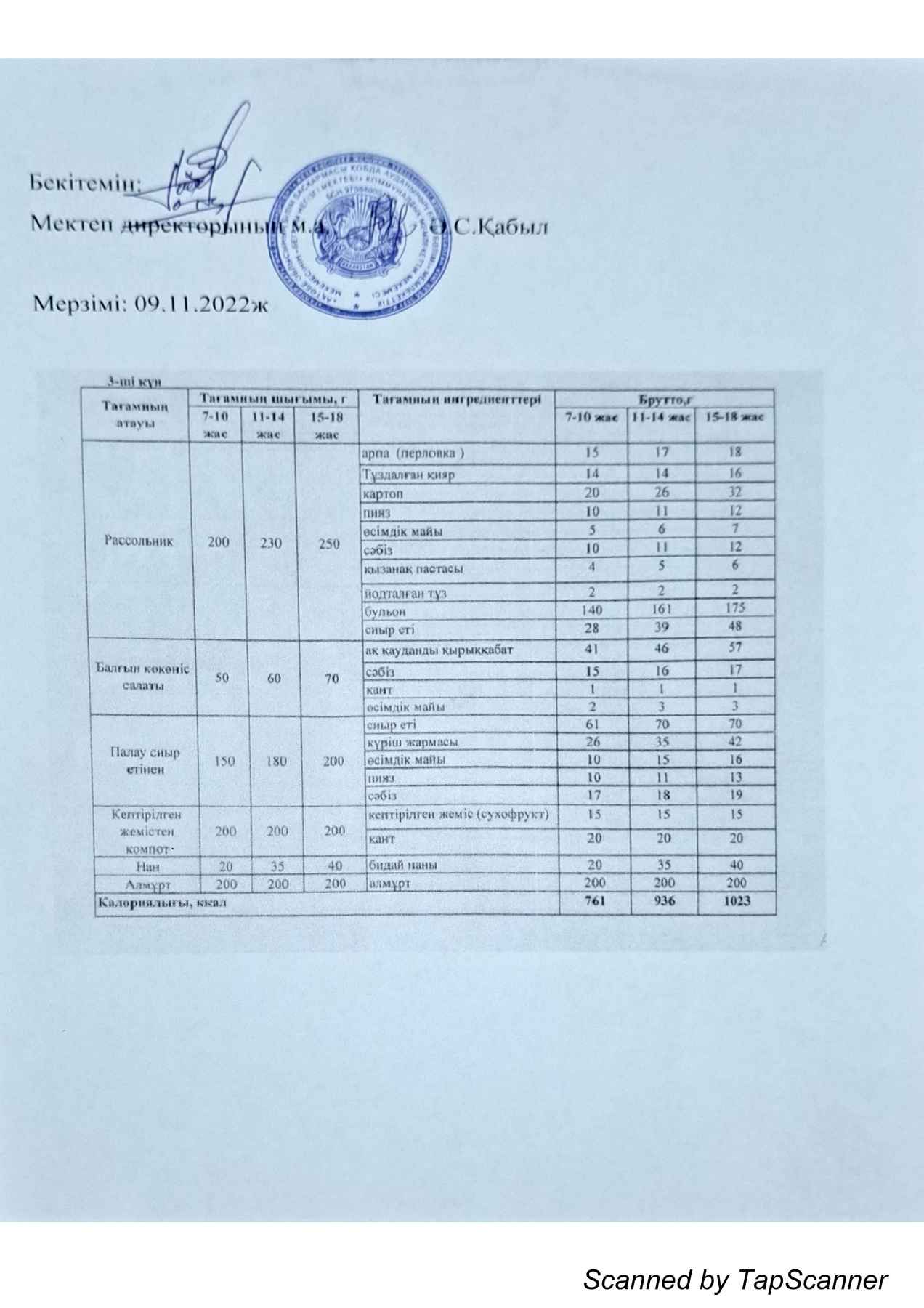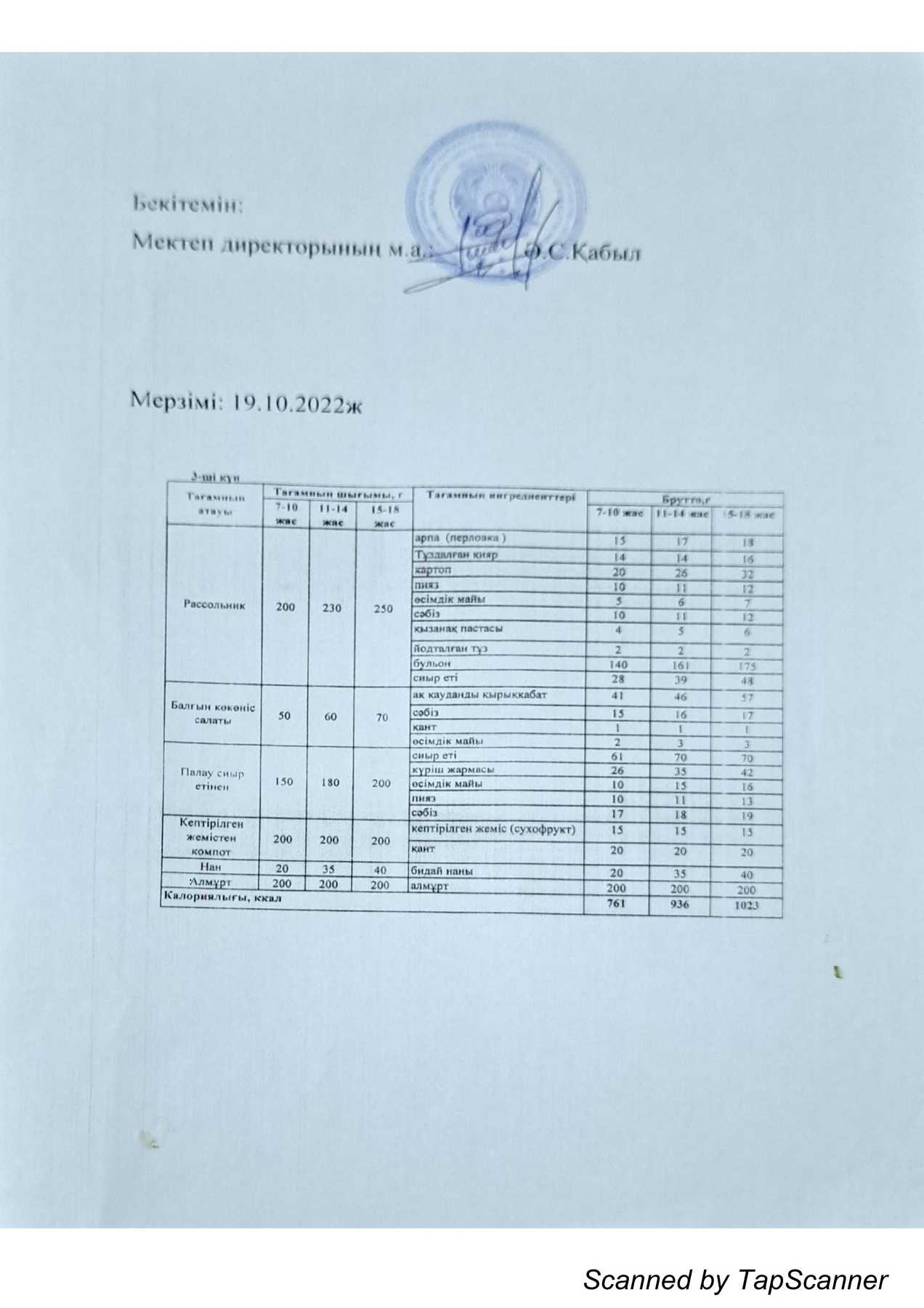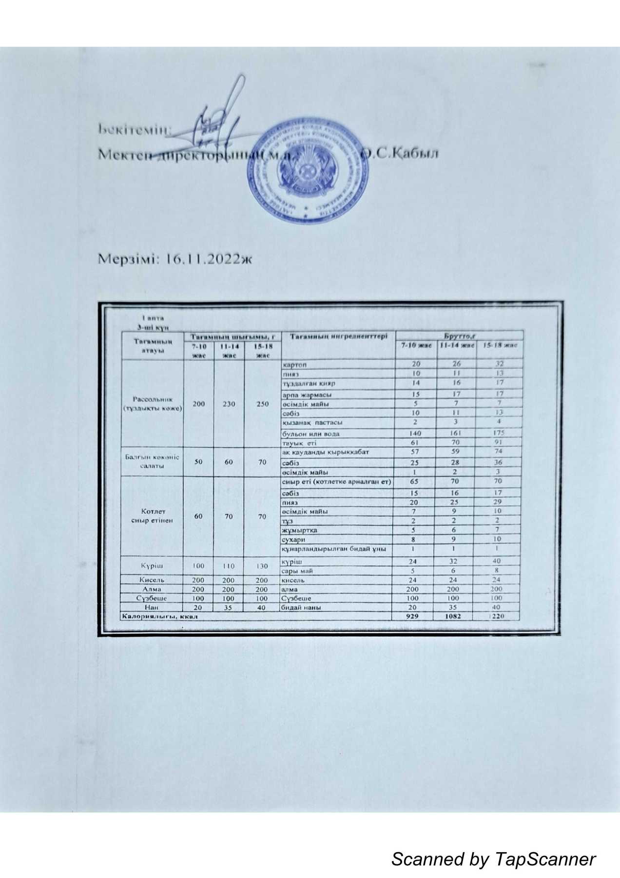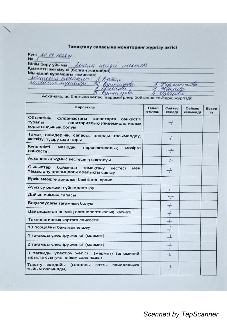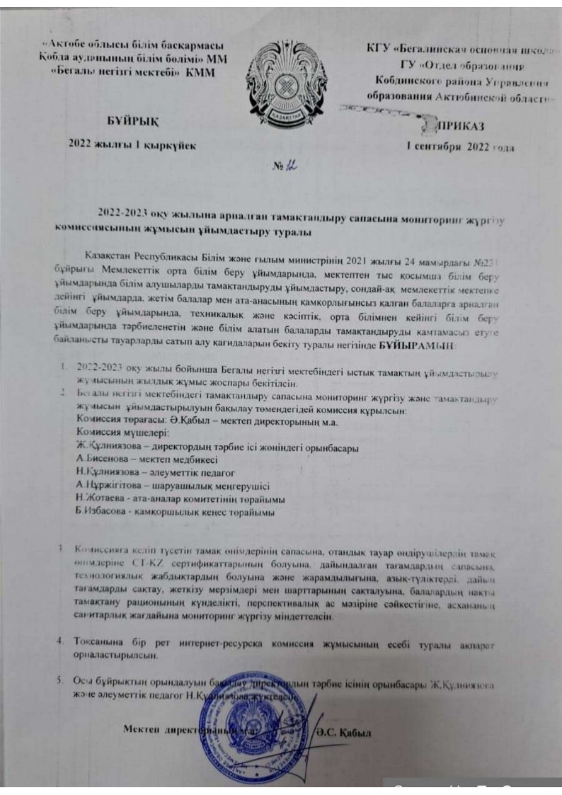 Ыстық тамақтандыруды ұйымдастыру 2022-2023ж