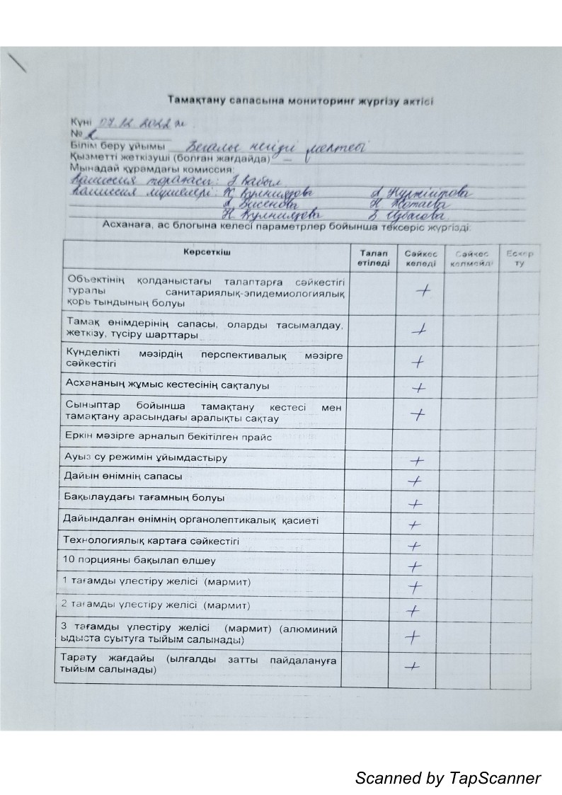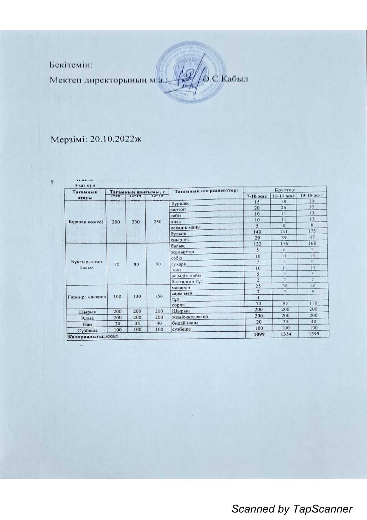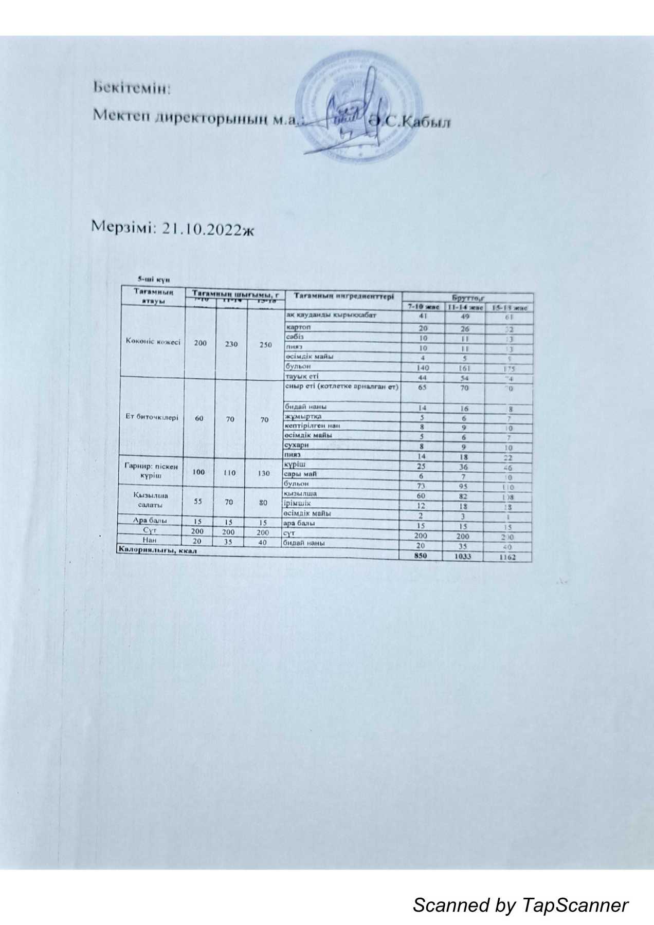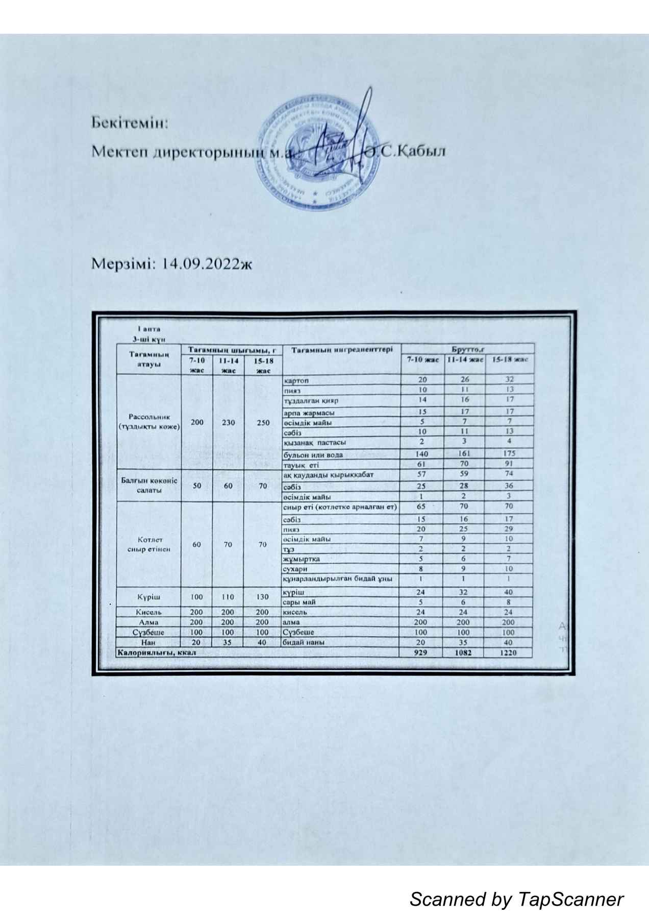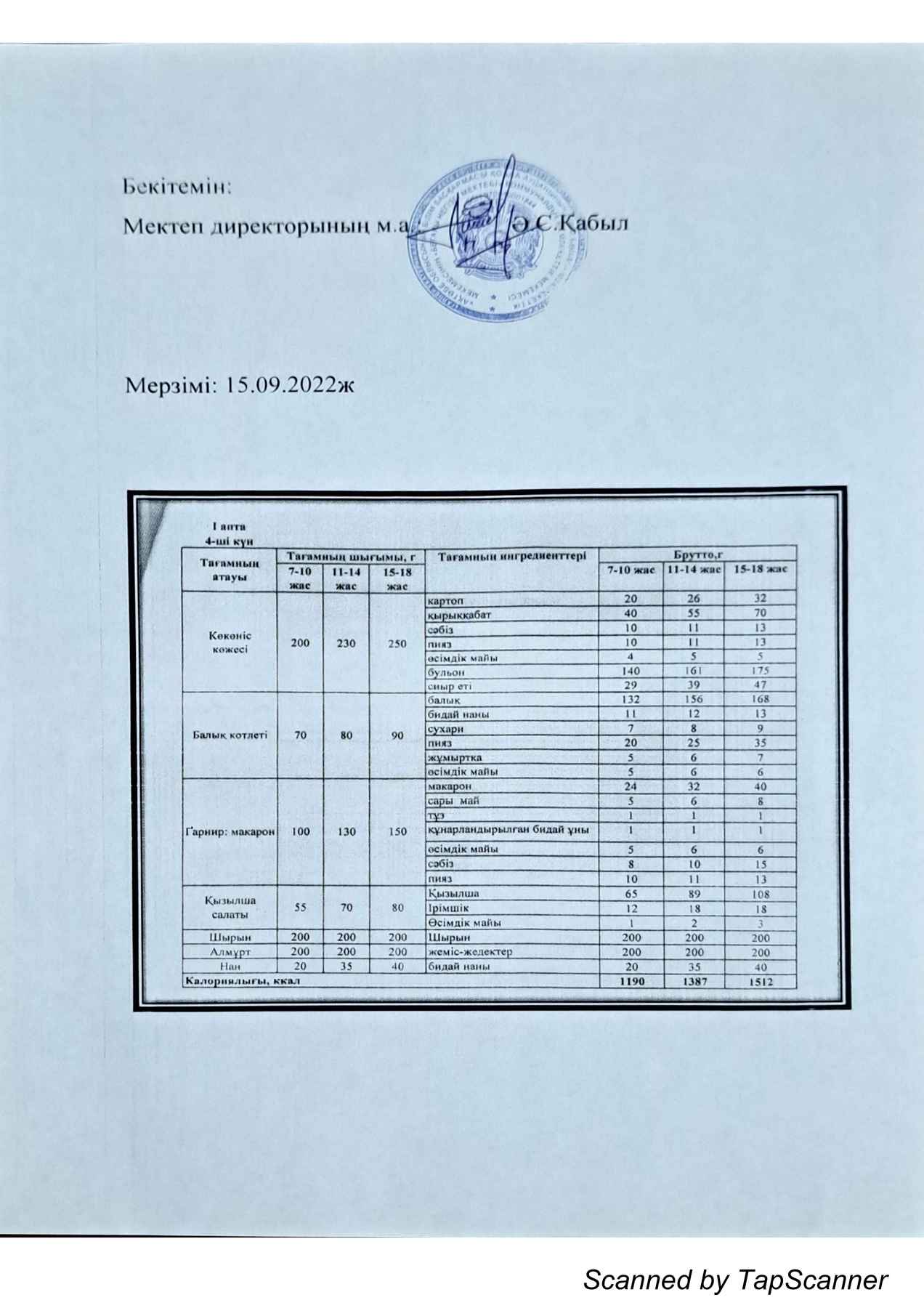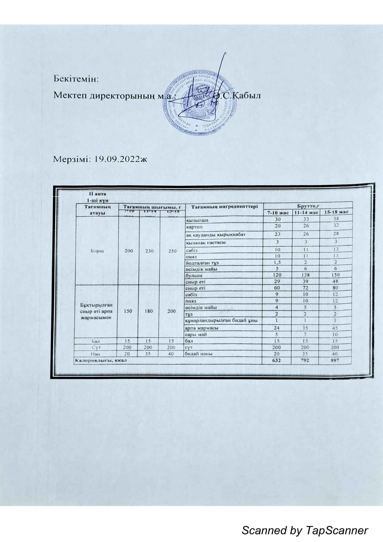 Ыстық тамақтандыруды ұйымдастыру 2022-2023ж