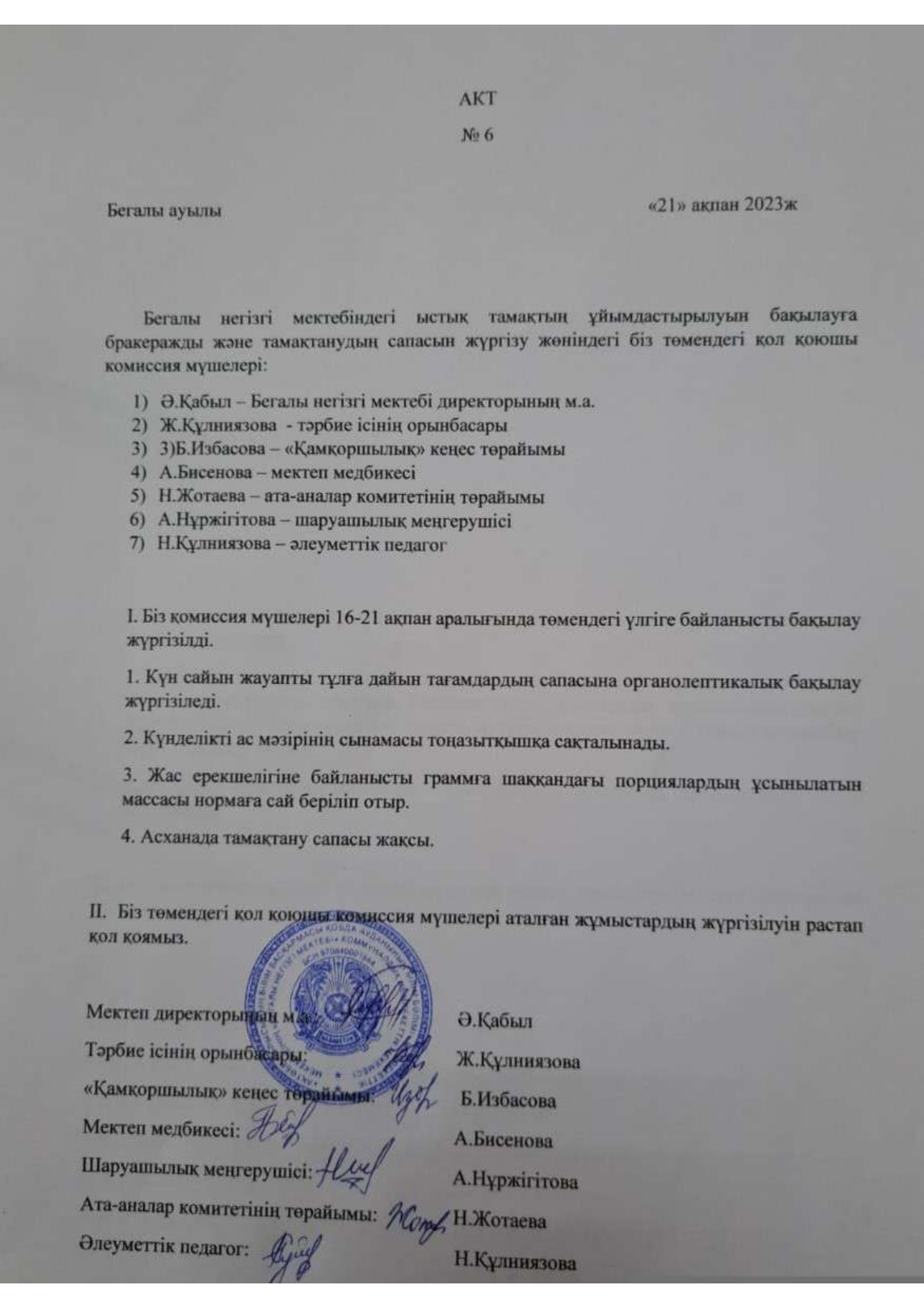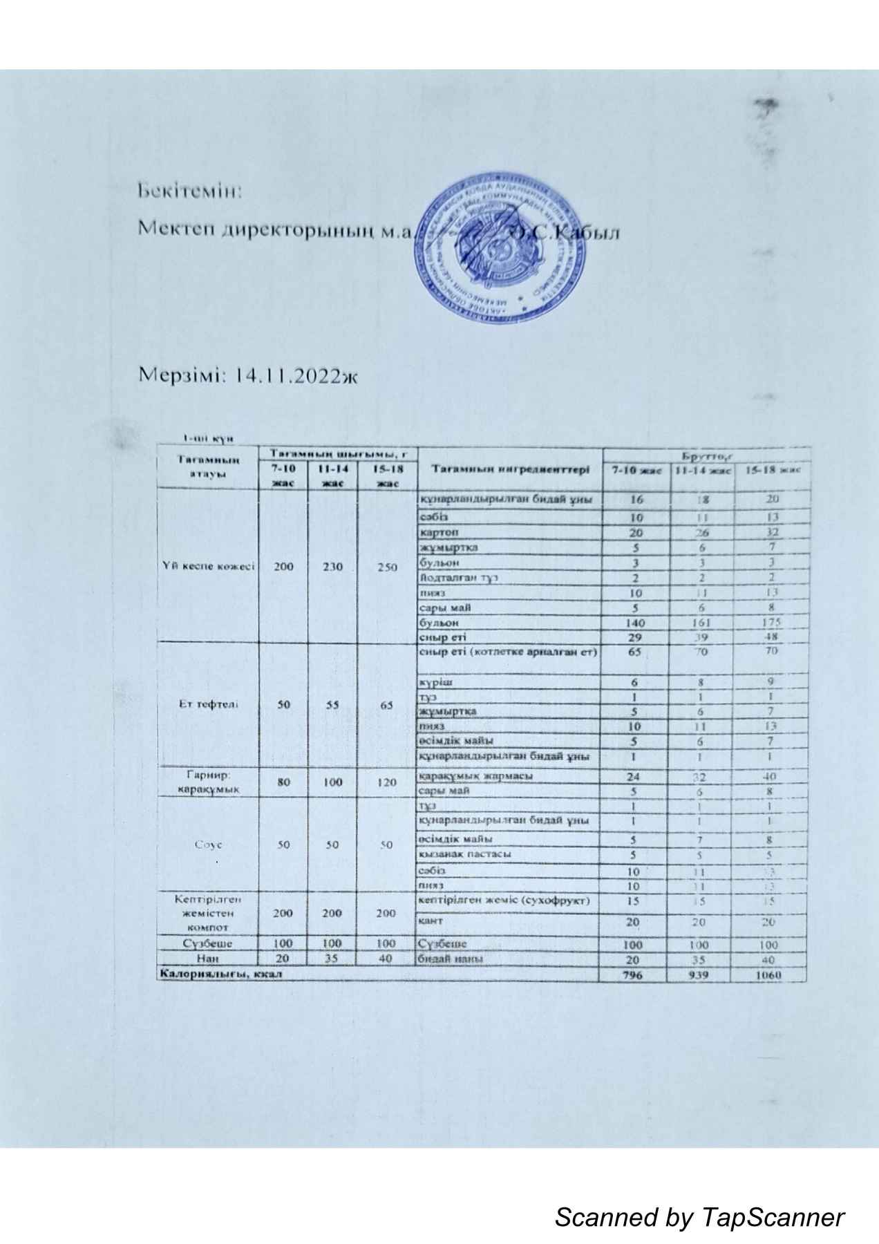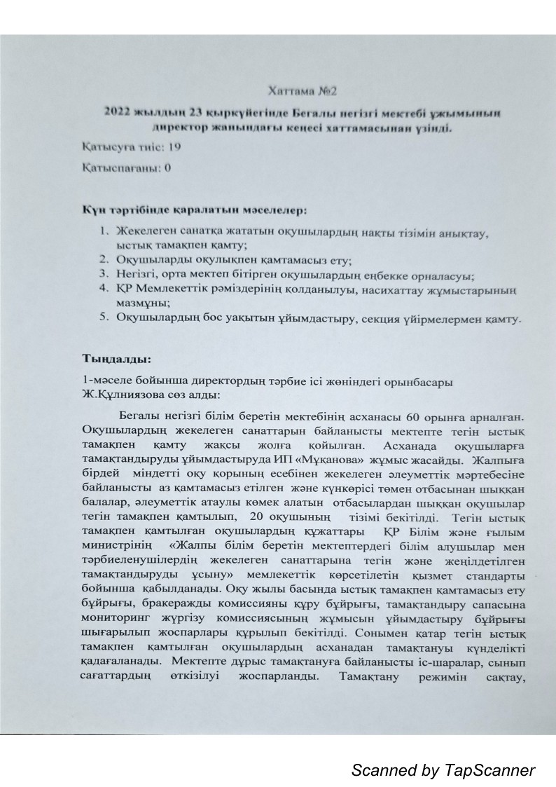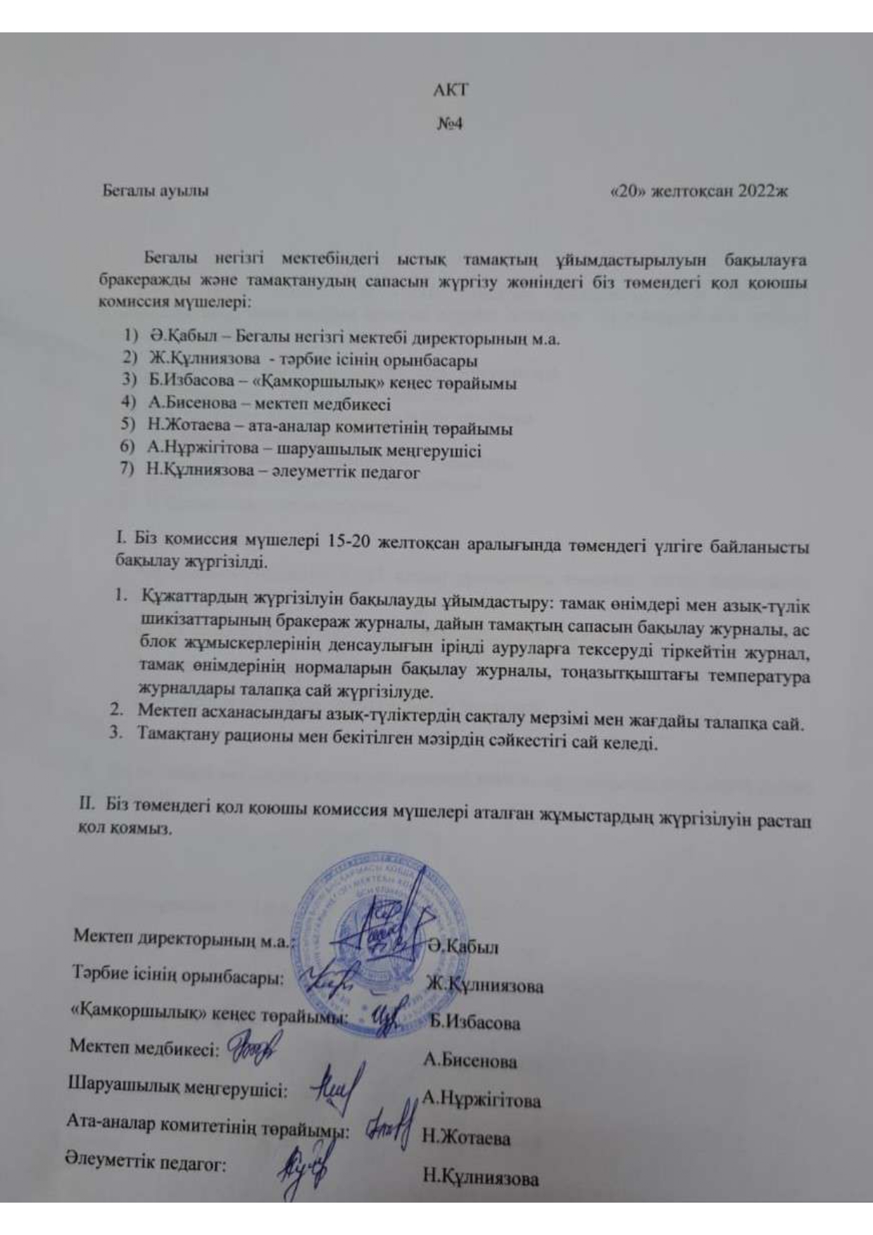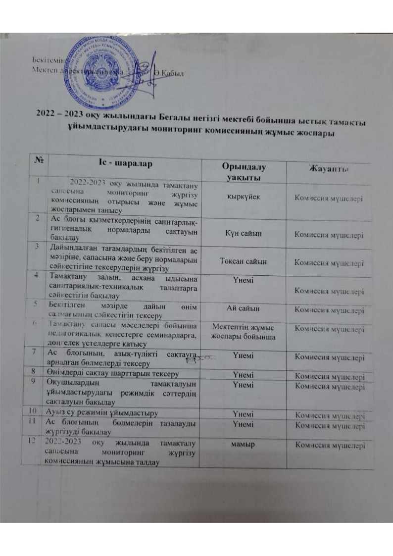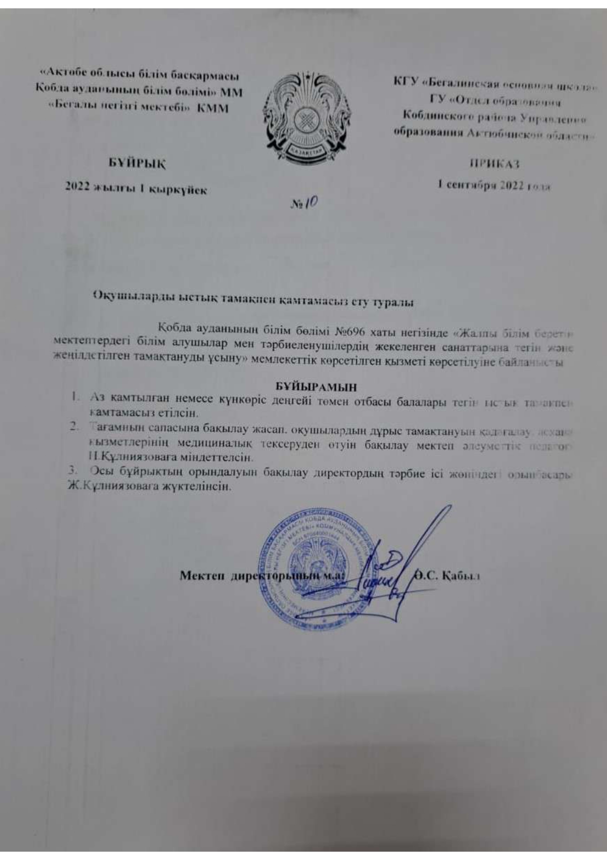 Ыстық тамақтандыруды ұйымдастыру 2022-2023ж