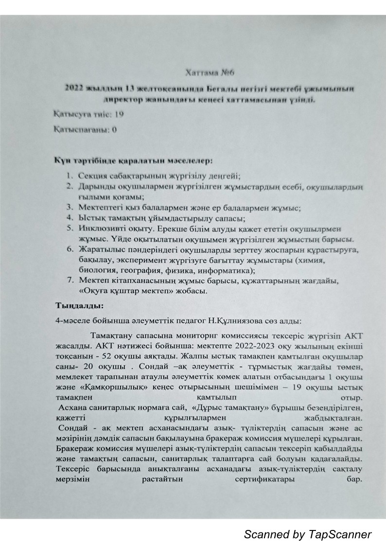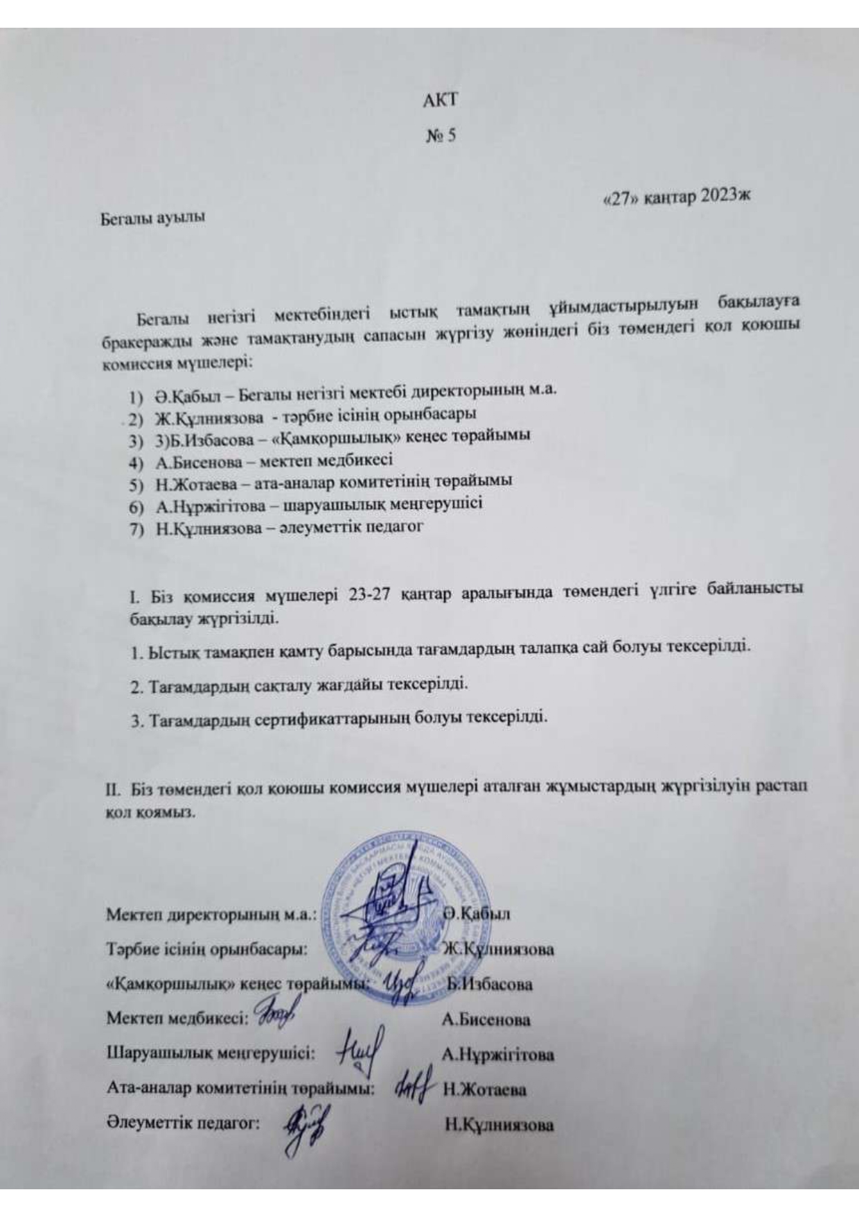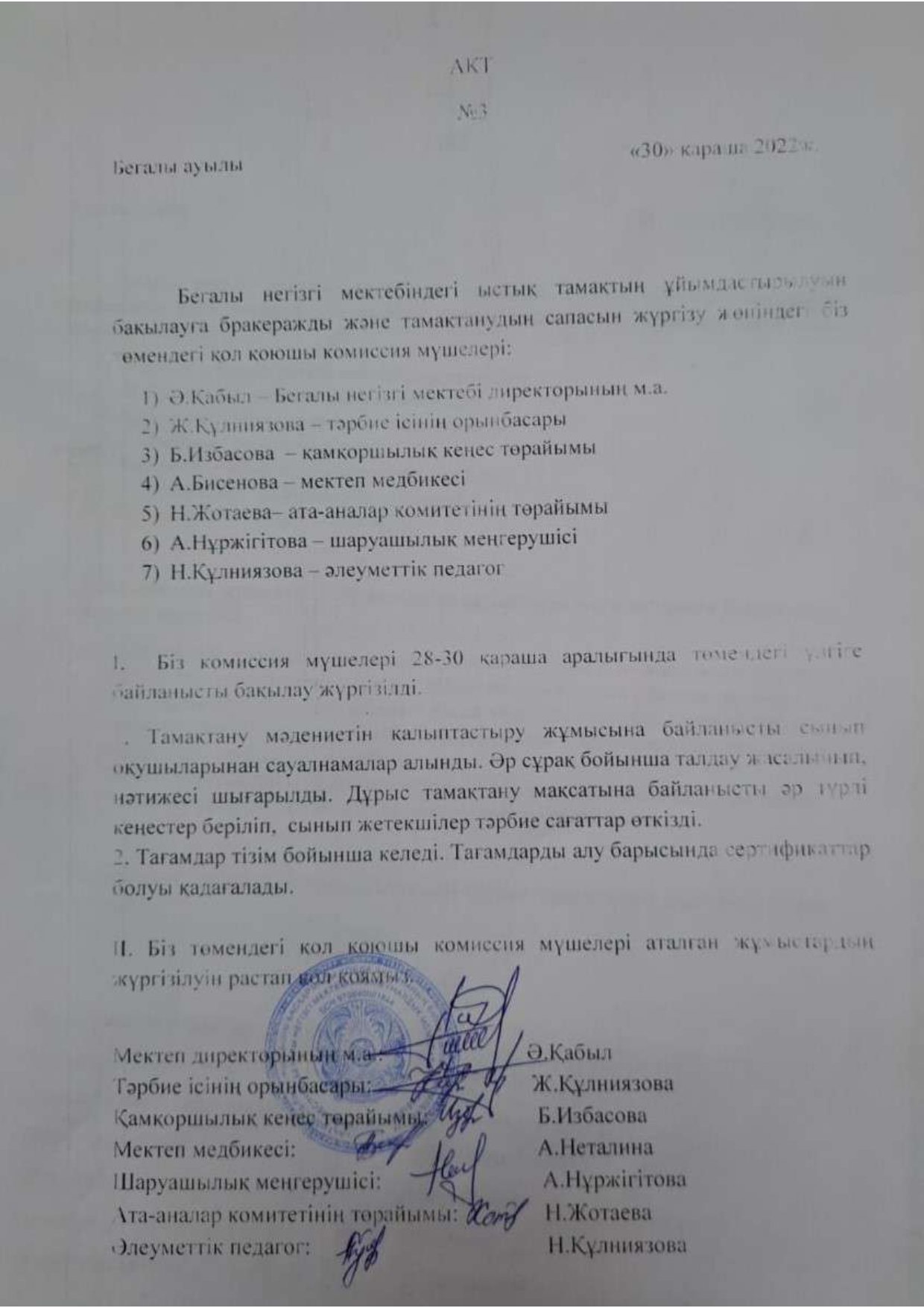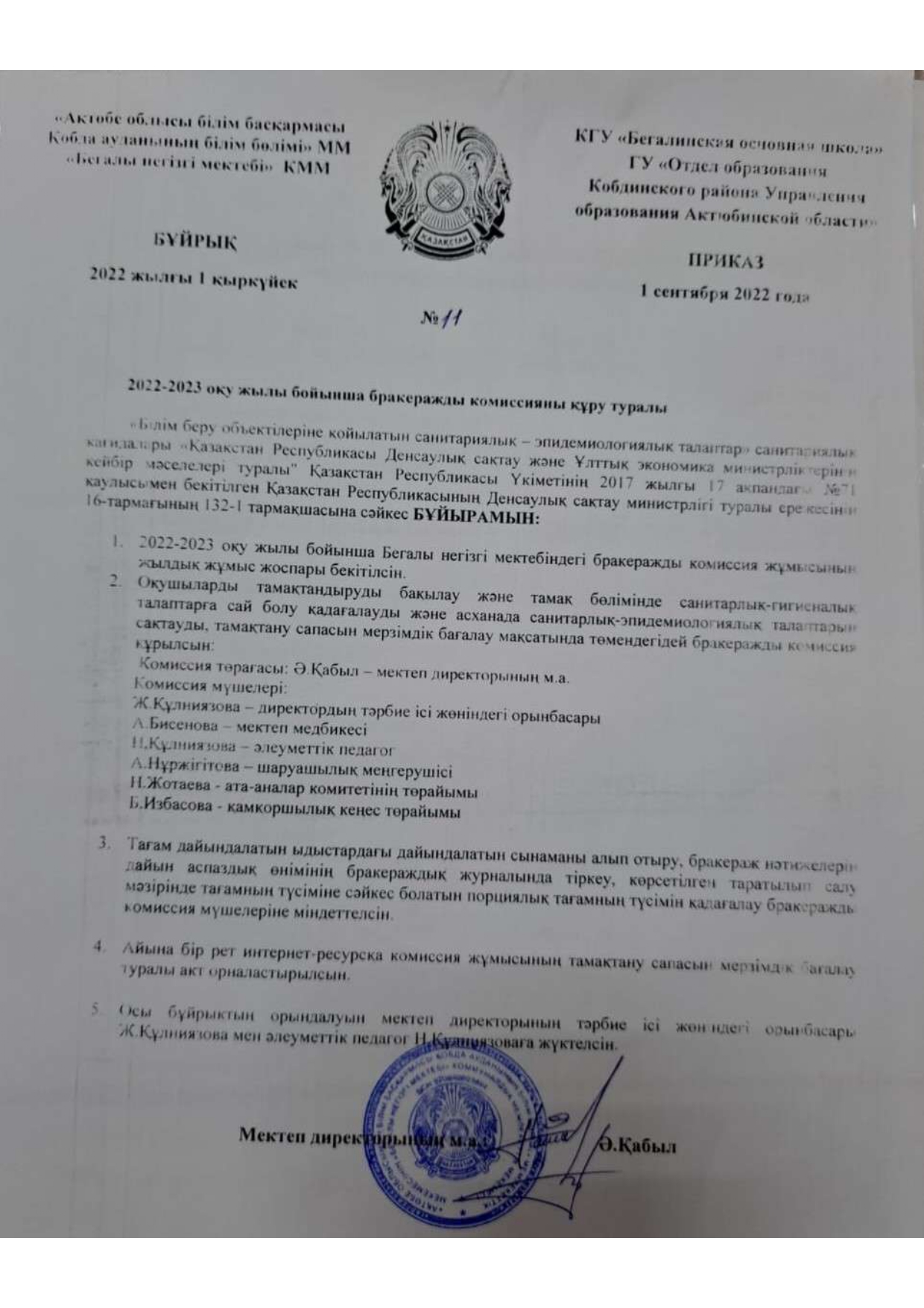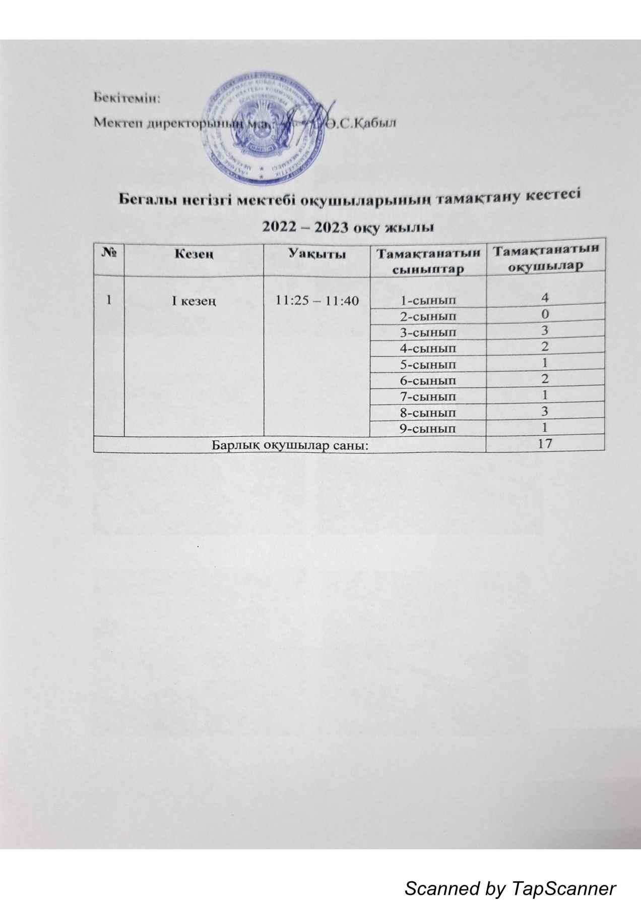 Ыстық тамақтандыруды ұйымдастыру 2022-2023ж